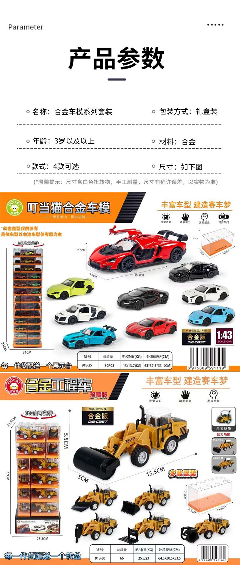 収蔵版合金都市工事車セット男の子収納箱車玩具子供玩具プレゼント展示箱