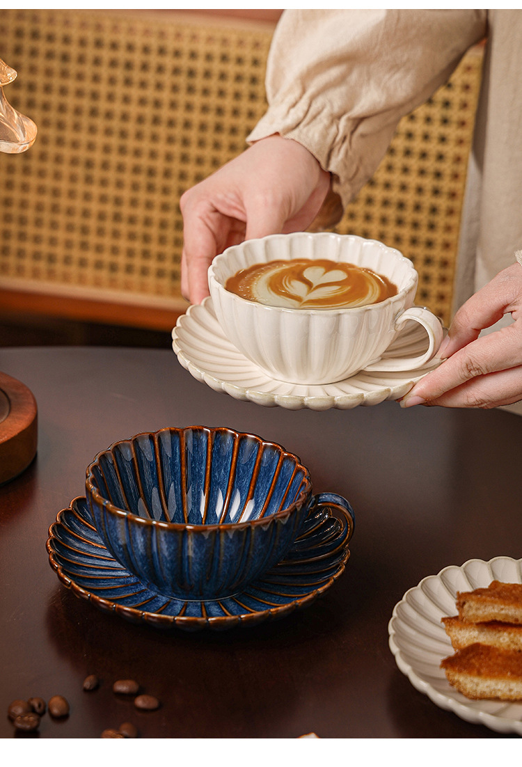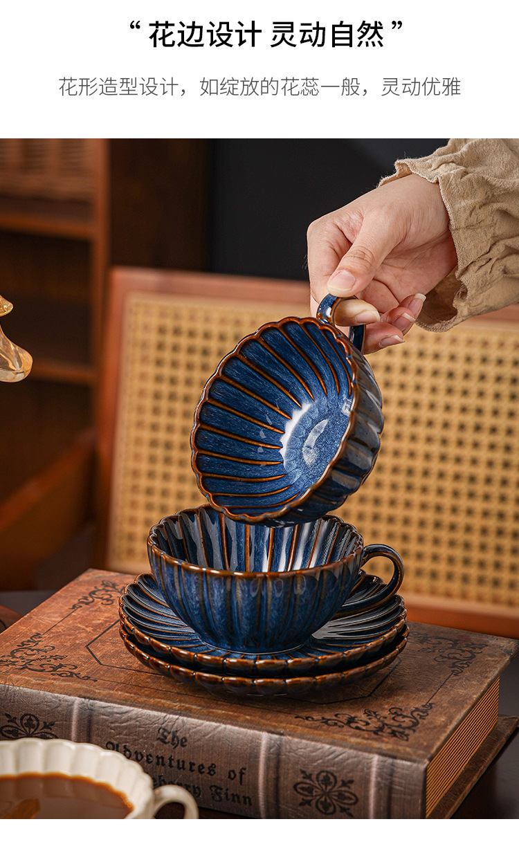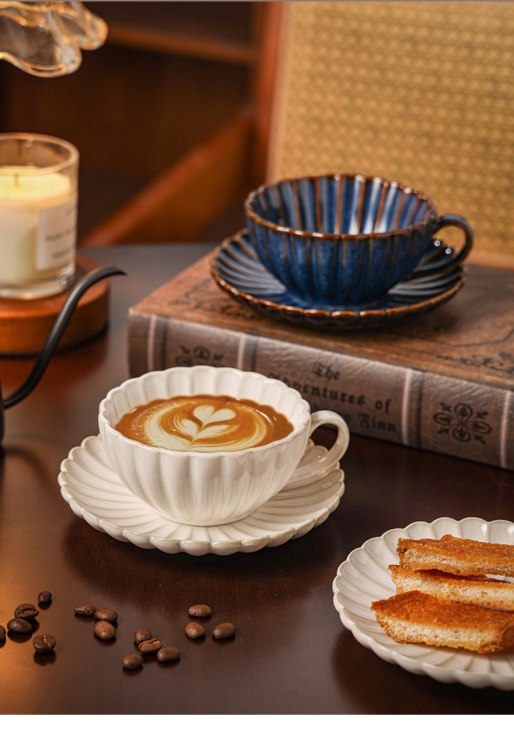 卸売レトロな窯変セラミックコーヒーカップとソーサー家庭用手淹れコーヒーセットカフェカップとプレート通常の包装