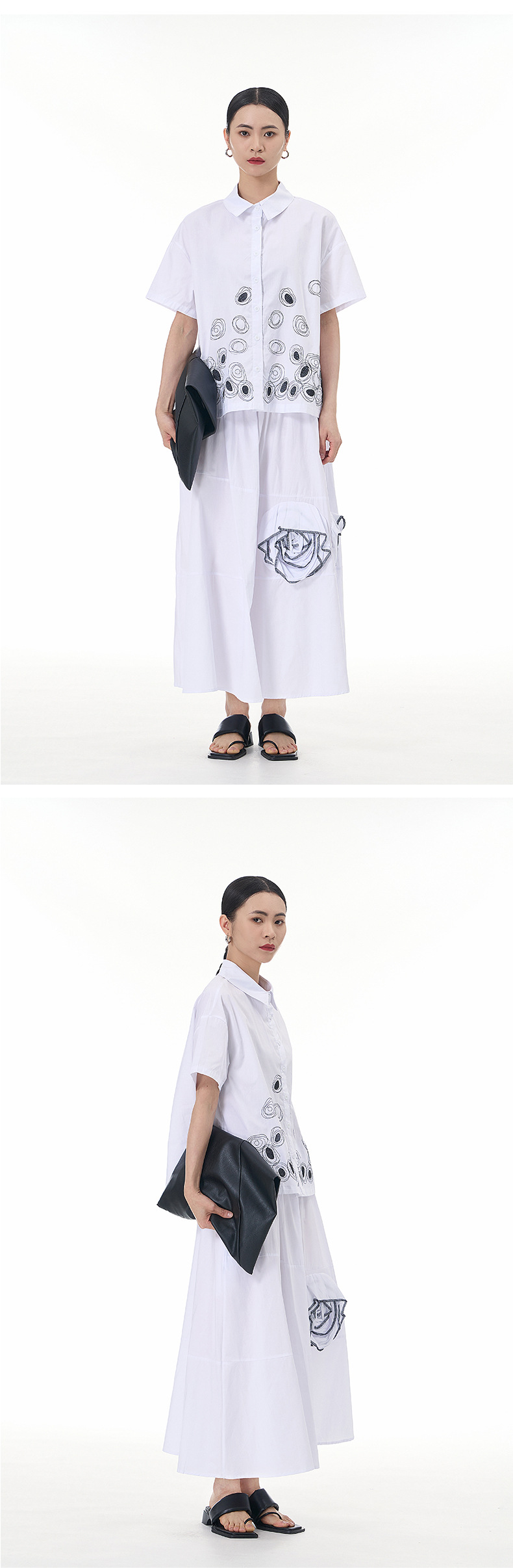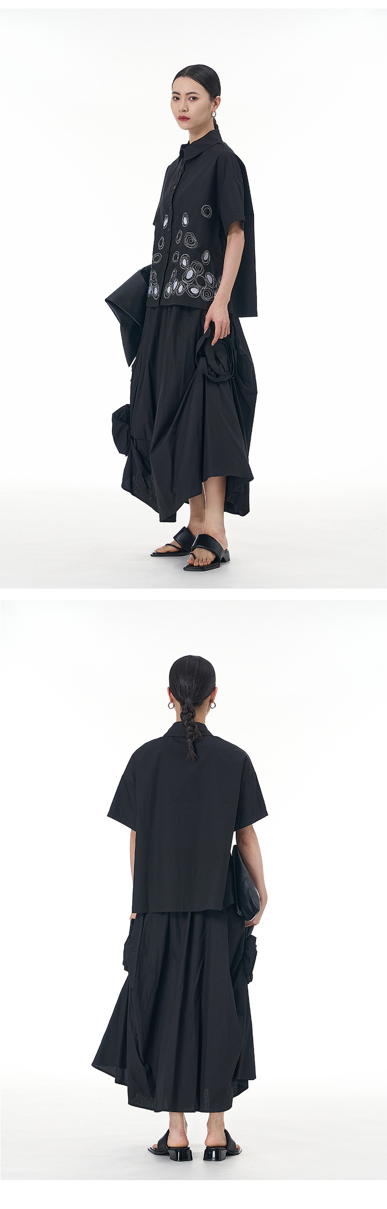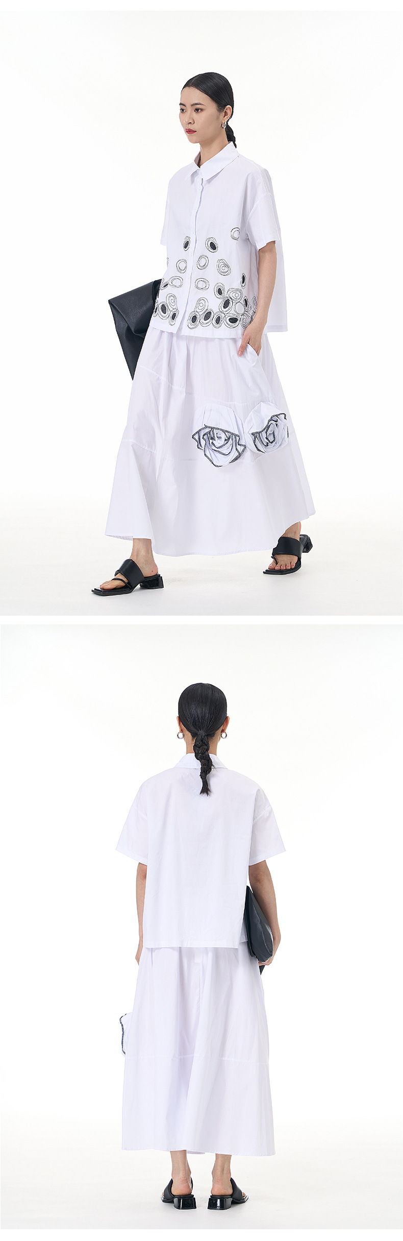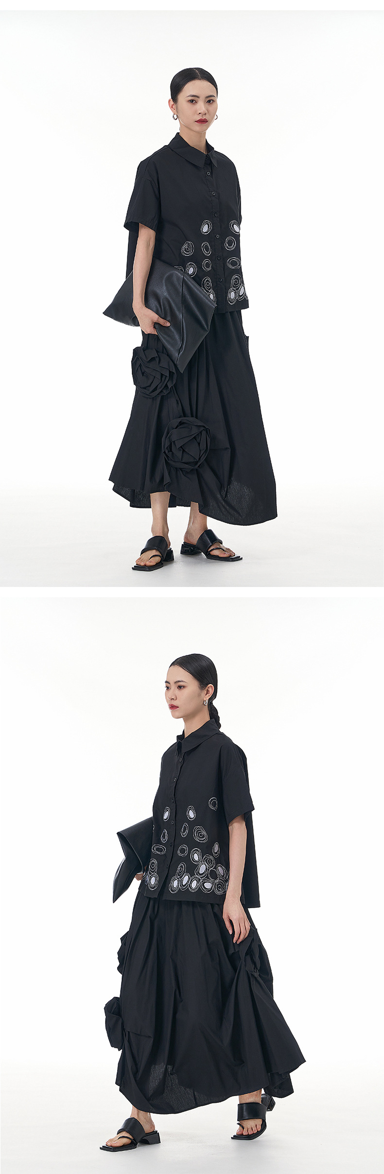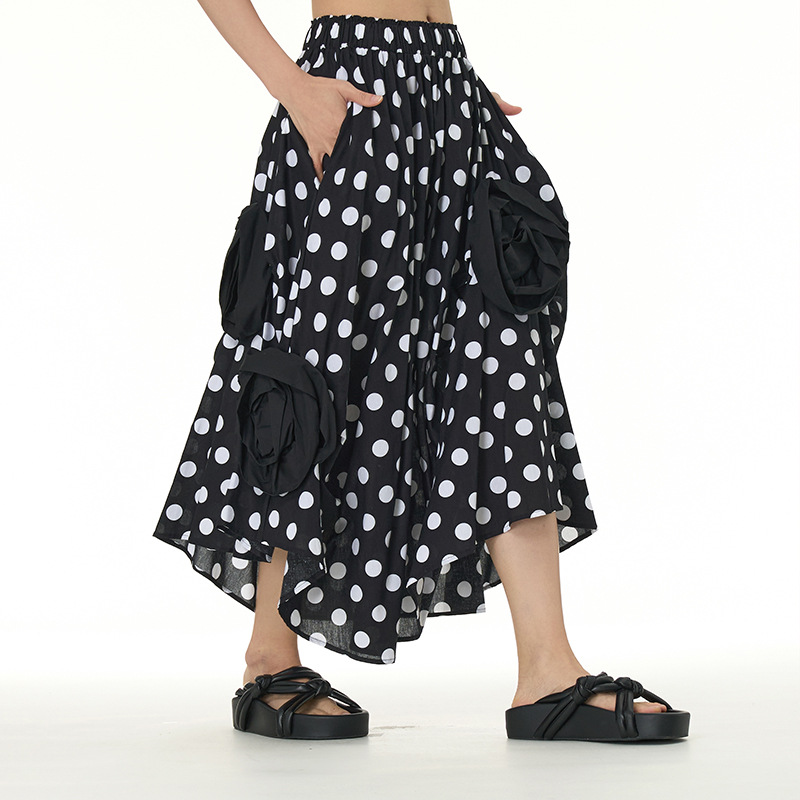 立体的な花柄のスカート、着痩せ効果のある花飾り付きスカート、2025年秋の新作デザイン、イレギュラーなスカート3351