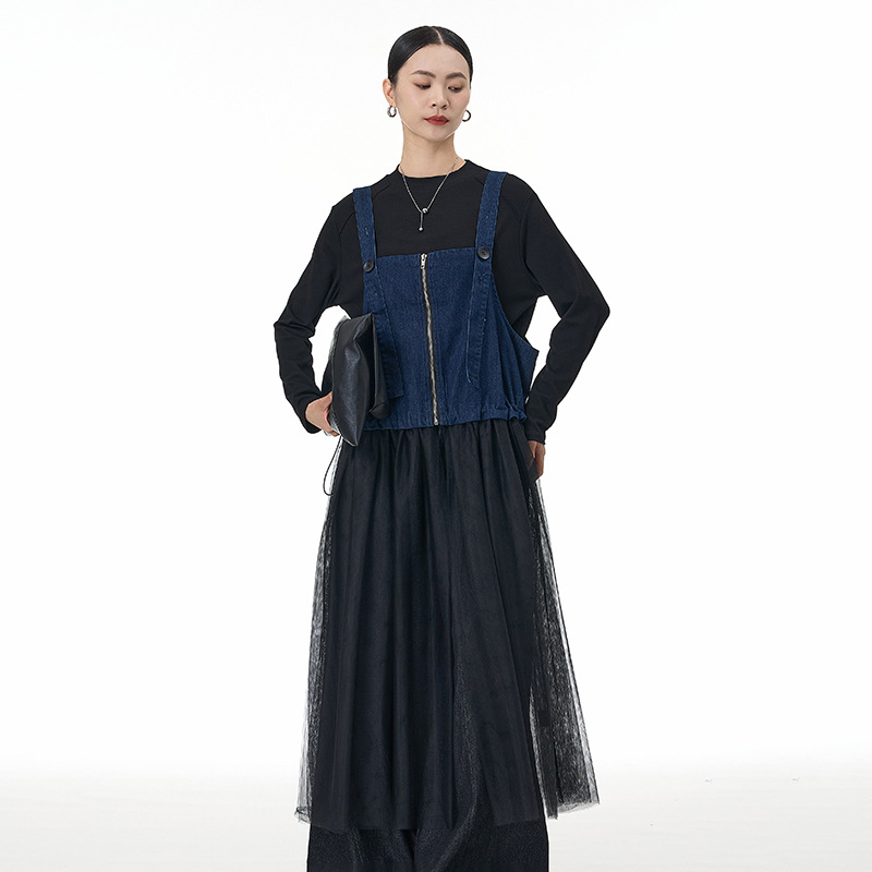 网纱背带裙2025秋季新款大码女装宽松显瘦连衣裙日系韩版潮69886