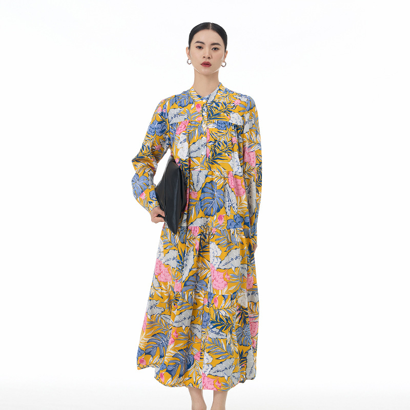 文学レトロプリントケーキドレス春新作2025大きいサイズレディースルーズスリムドレス5393-539