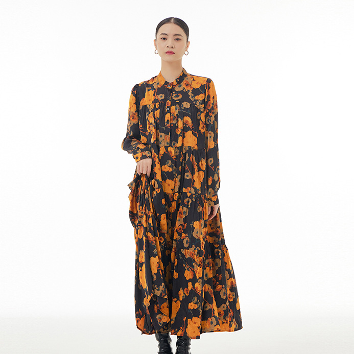 2025年秋オリジナルレトロ花柄スカートケーキスカートデザイン性のあるニッチブランド大きいサイズ婦人服ワンピース5392-315