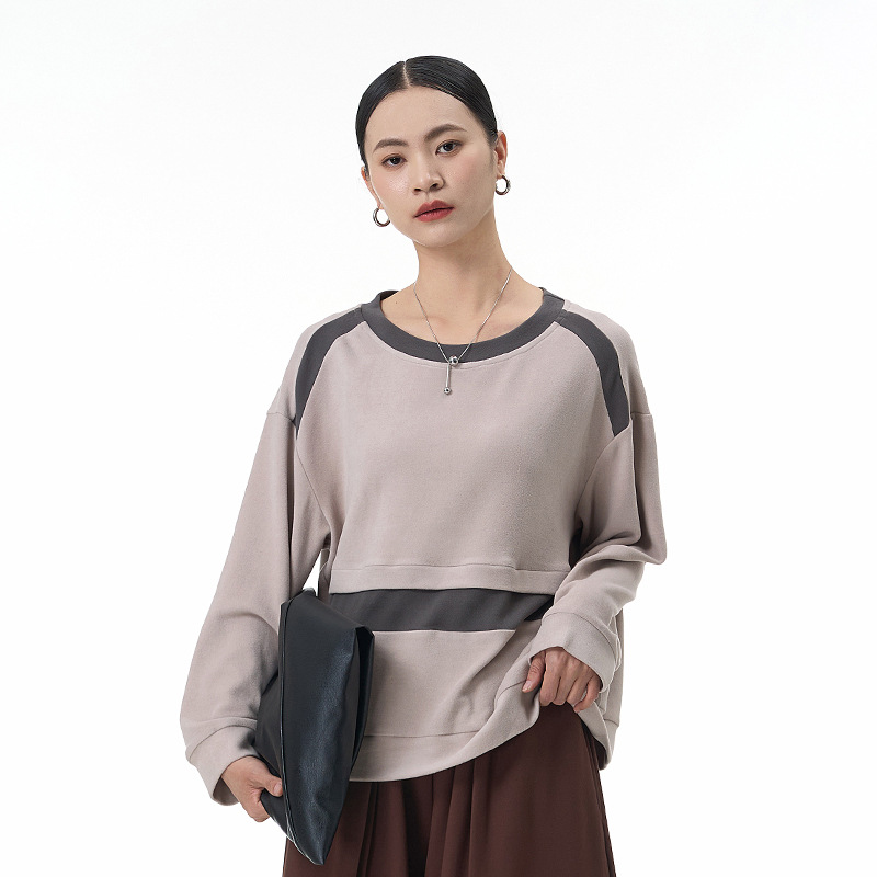 2025秋季新款通勤韩版宽松大码女装拼接上衣长袖卫衣显瘦潮68322