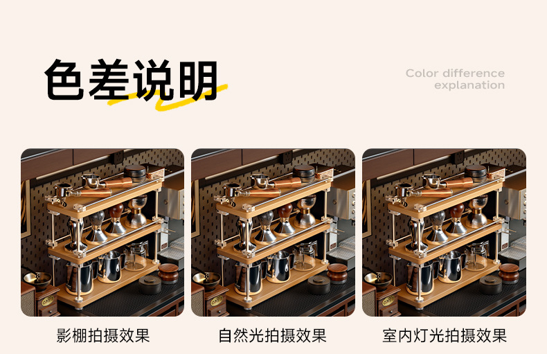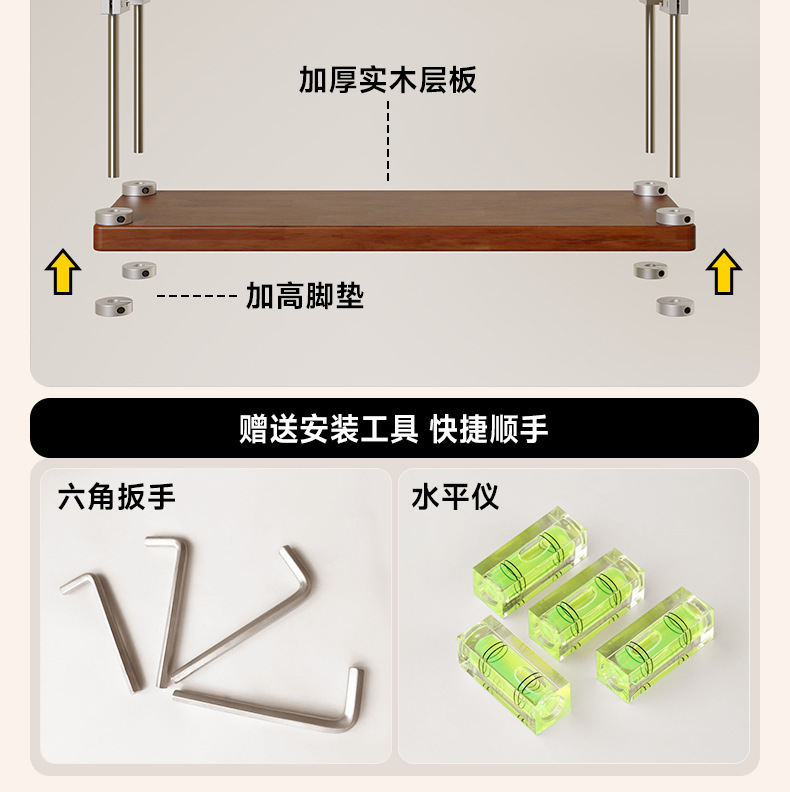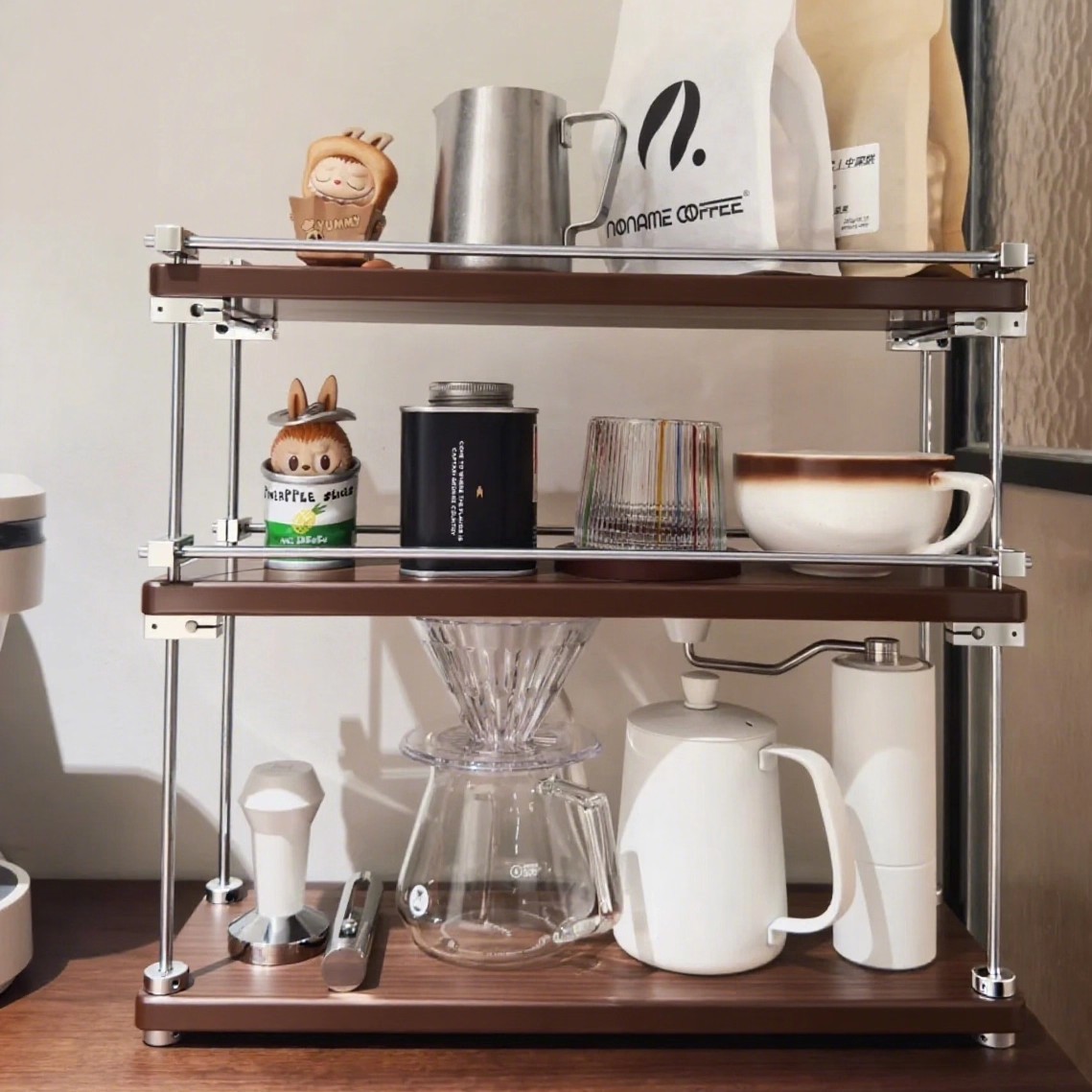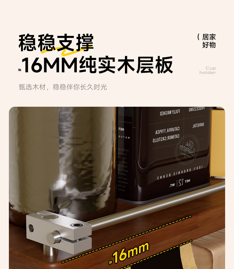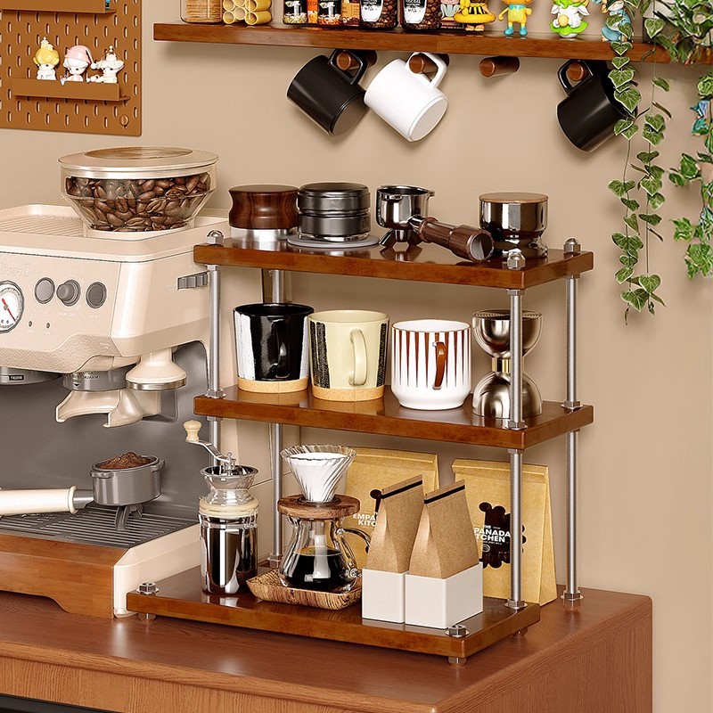光轴置物架桌面实木小架子咖啡角杯架多层化妆品玄关柜中古收纳架