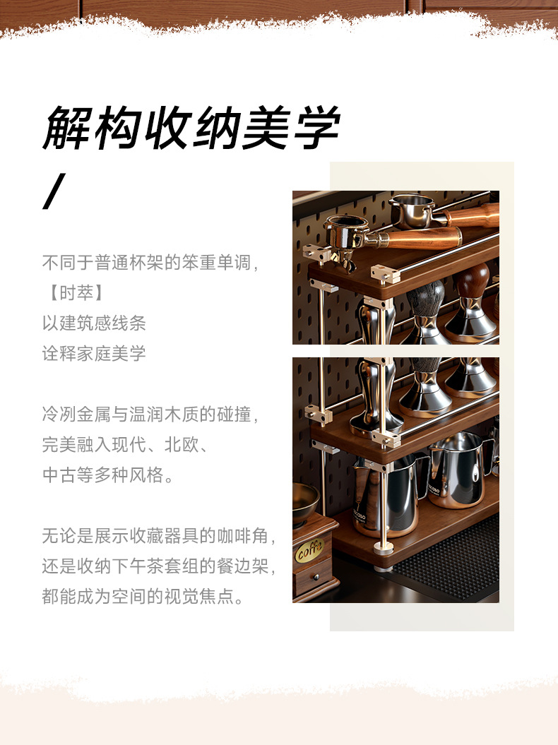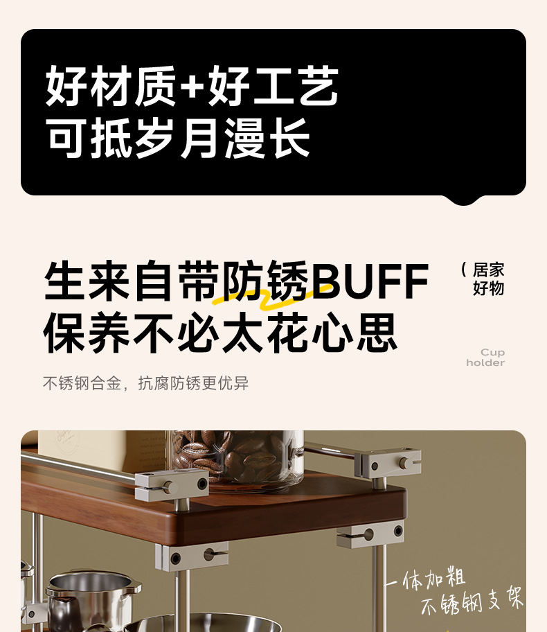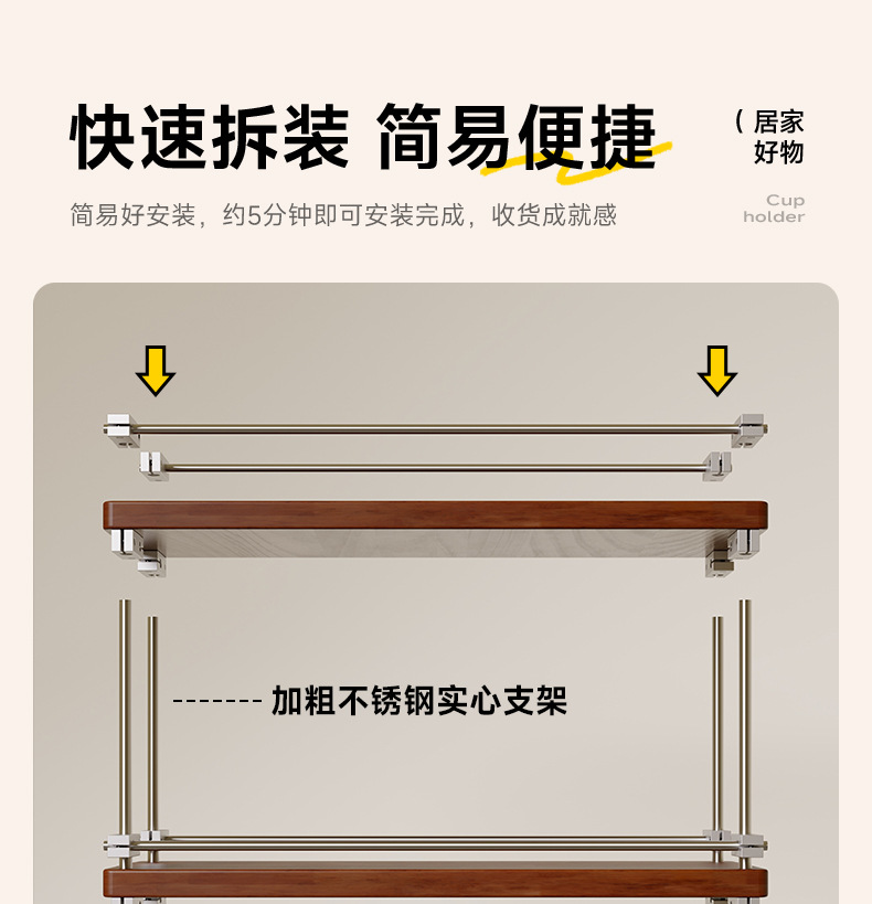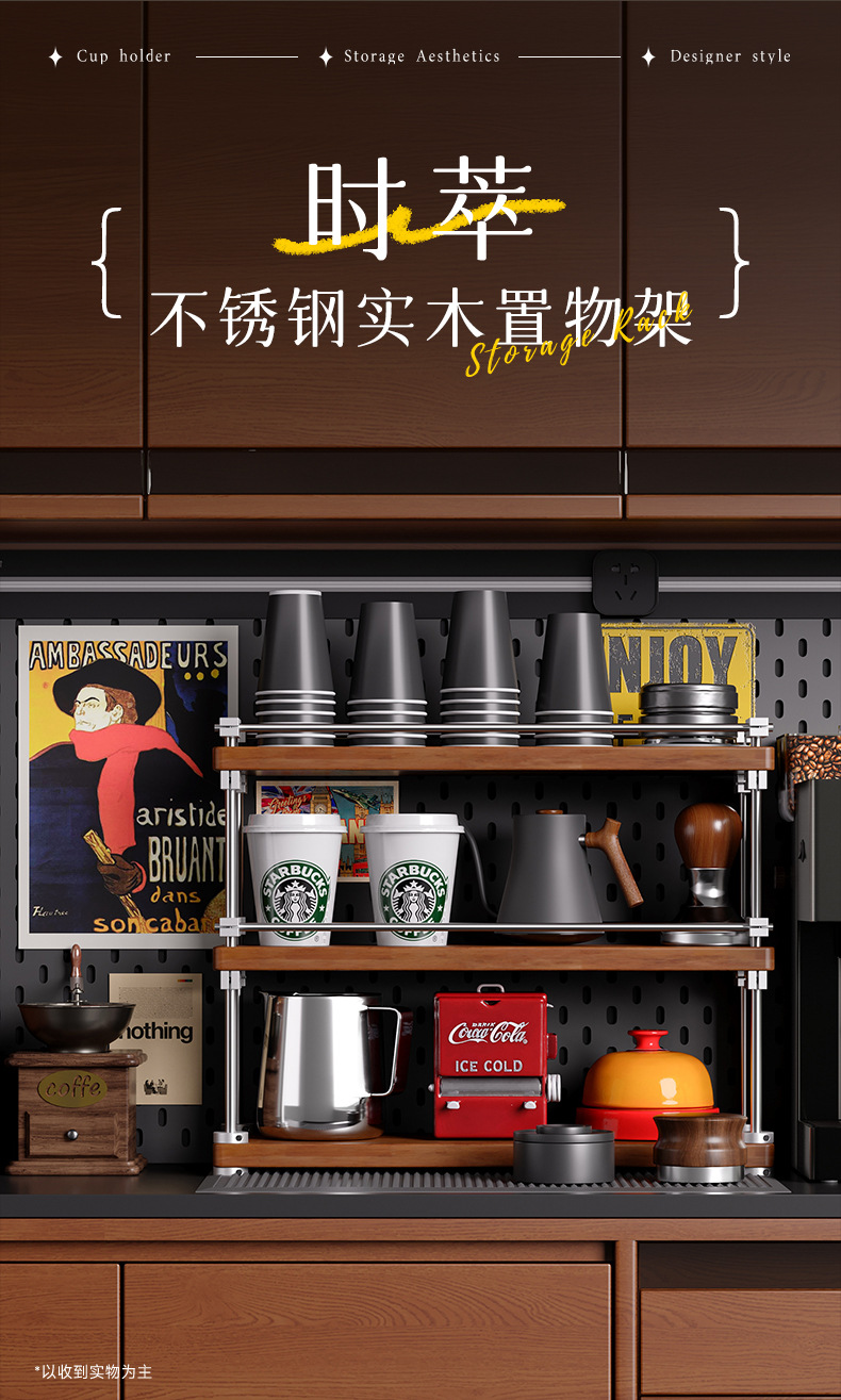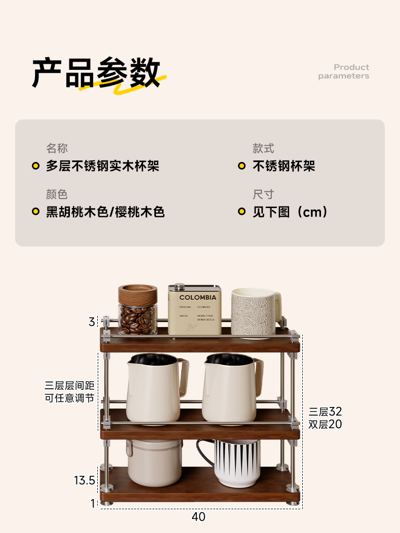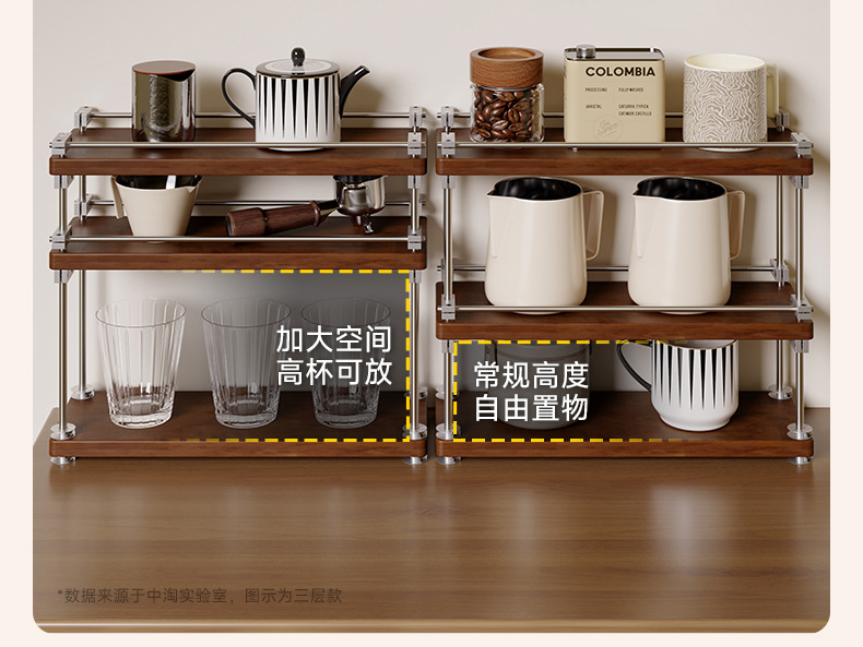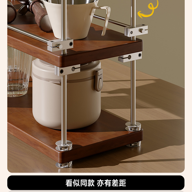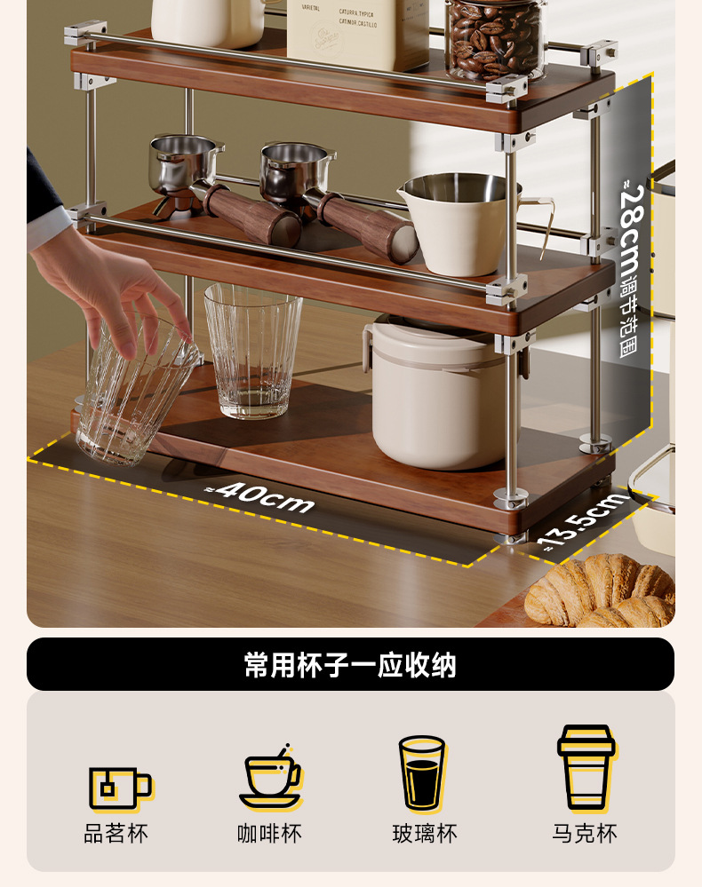 实木不锈钢杯架咖啡角杯子工位多层收纳架梳妆台香水架桌面置物架