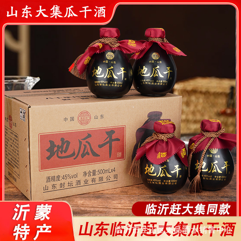 白酒厂家批发山东瓜干酒地瓜烧粗粮白酒 42度500ml*4瓶整箱粮食酒