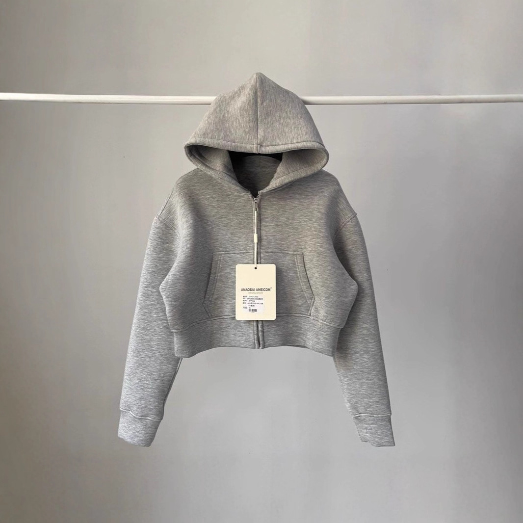 美式辣妹时尚纯色空气层料宽松连帽卫衣女春秋休闲运动露脐短上衣