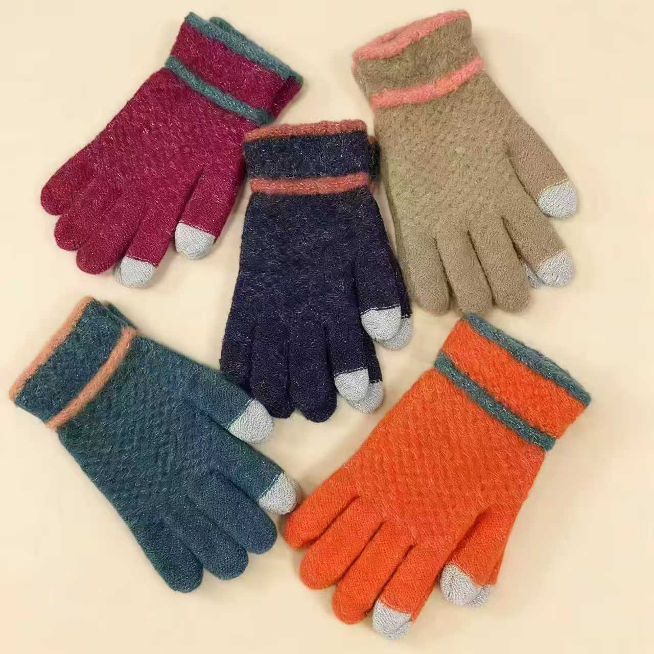 手袋の女性は冬にベルベットを厚くして韓国版の防寒かわいい自転車に乗ってタッチパネルの保温毛糸ニット手袋卸売りをした