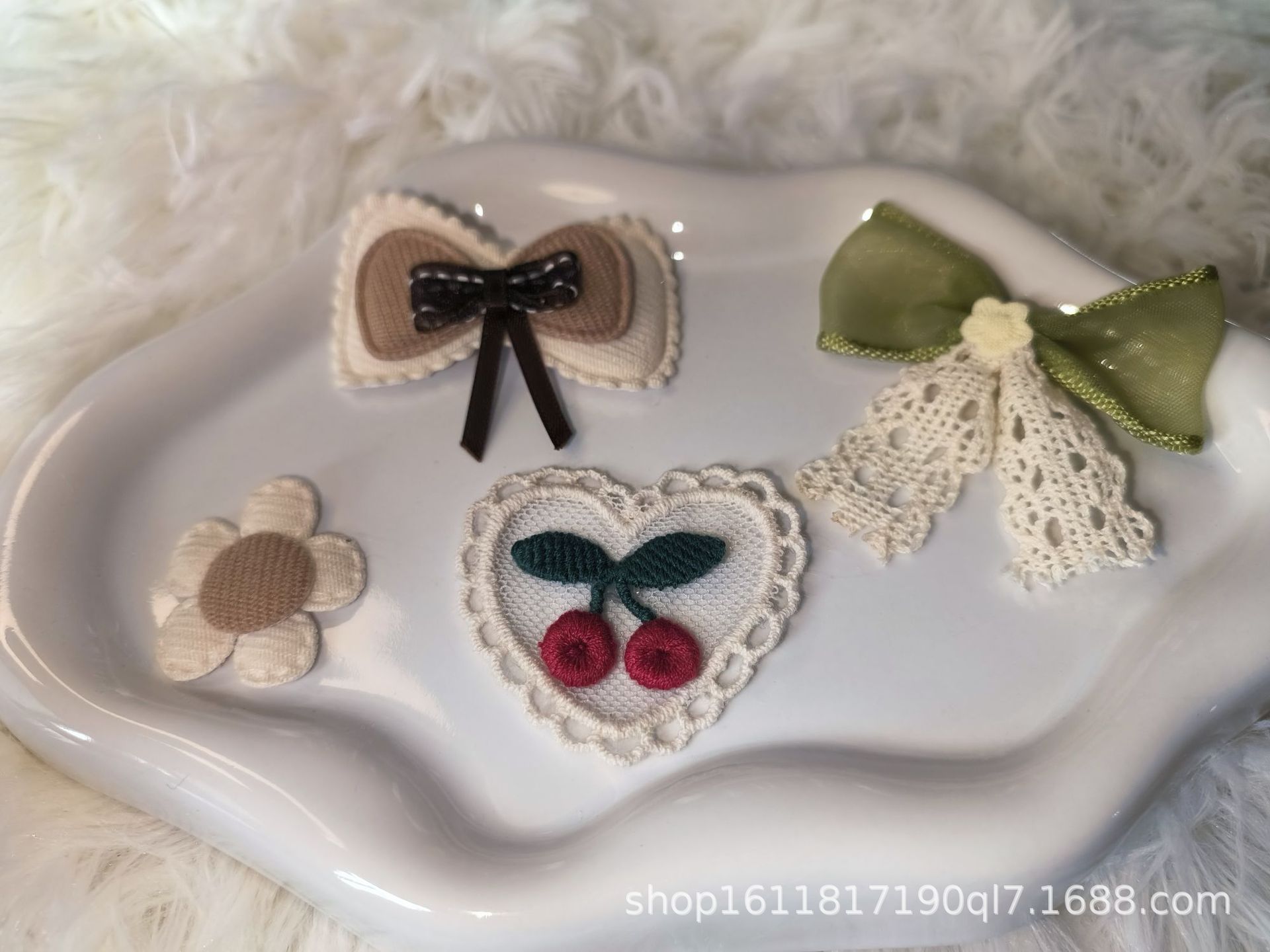 蝶結び、ハート、チェリー、手作りDIY、コサージュ、服、メッシュ、ヘアピン、ブローチ、アクセサリー、装飾品、材料、編み物