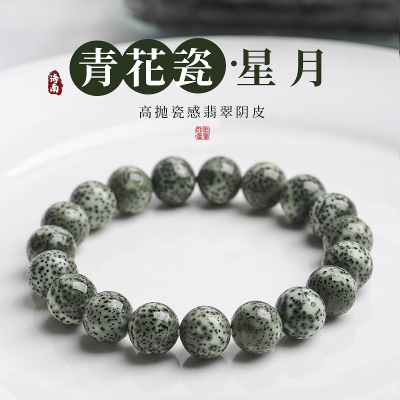 海南星月菩提ブレスレット、男性と女性用、緑の陰石翡翠素材、高密度指巻き、柔らかい仏珠、手遊び、クロスボーダー