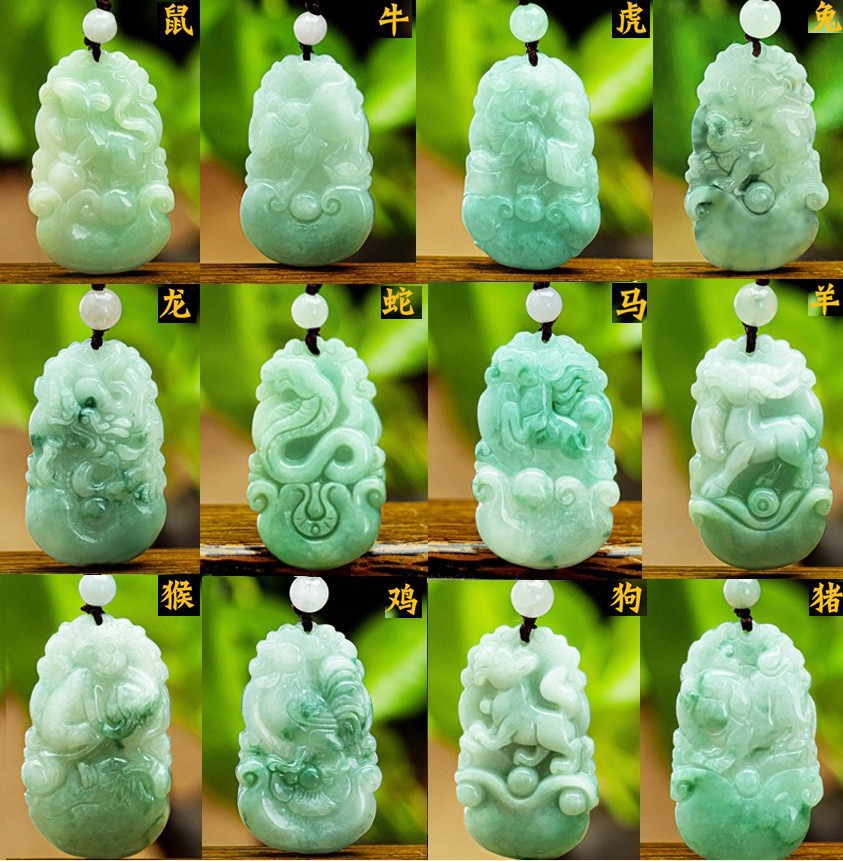 天然A級翡翠干支ペンダント 男女兼用 翡翠 ネズミ 牛 虎 ウサギ ドラゴン 蛇 馬 羊 猿 鶏 犬 豚