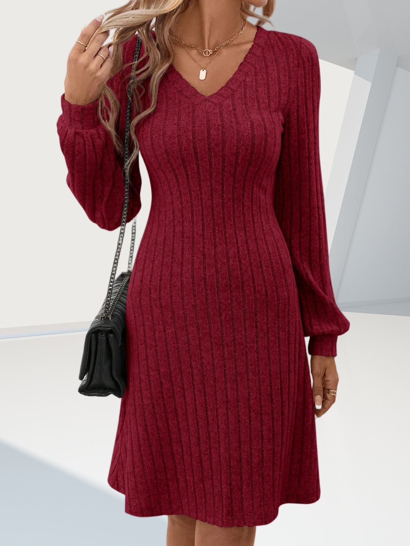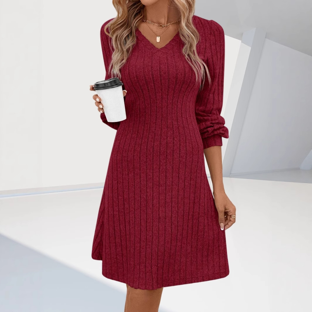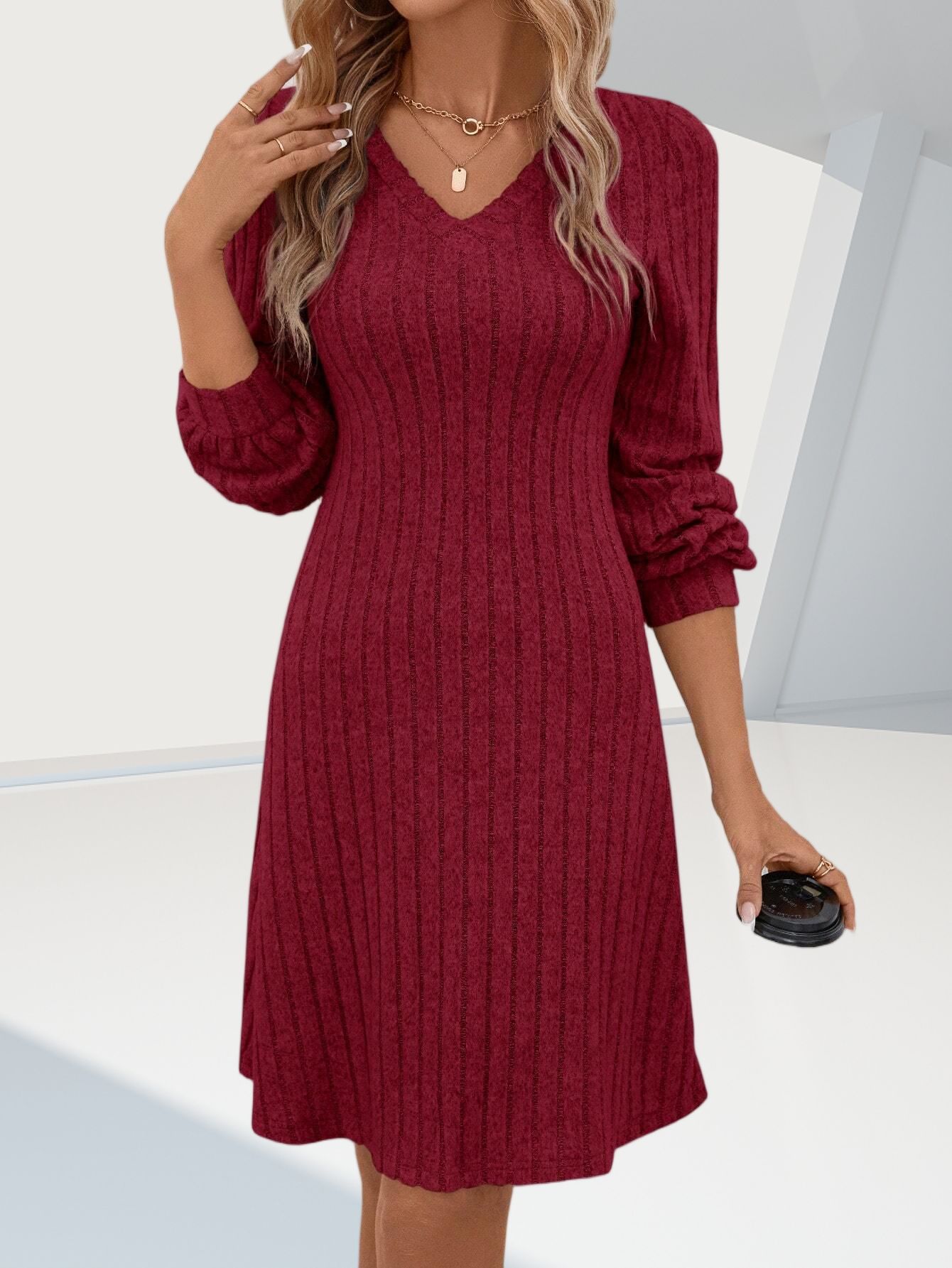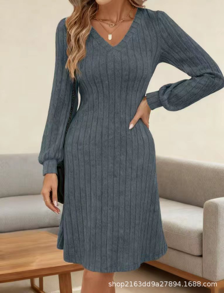 亚马逊欧美跨境外贸2025秋冬新款V磨毛坑条长袖连衣裙大衣上衣