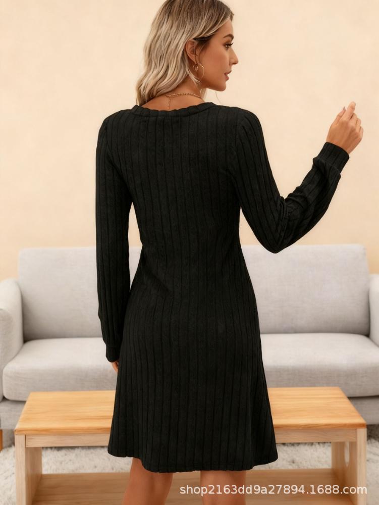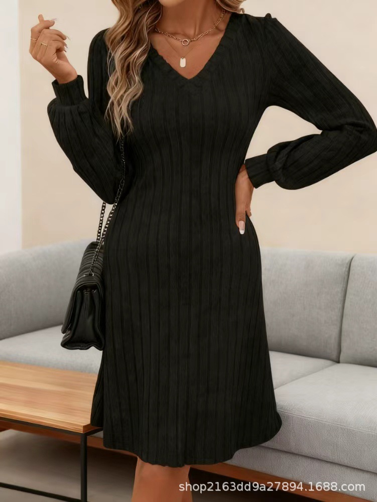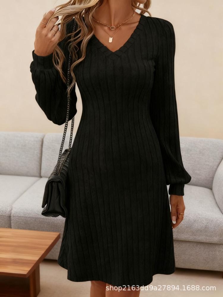 アマゾン欧米の国境を越えた対外貿易2025秋冬の新型vネックの毛の穴の長袖のワンピースの上着の女性