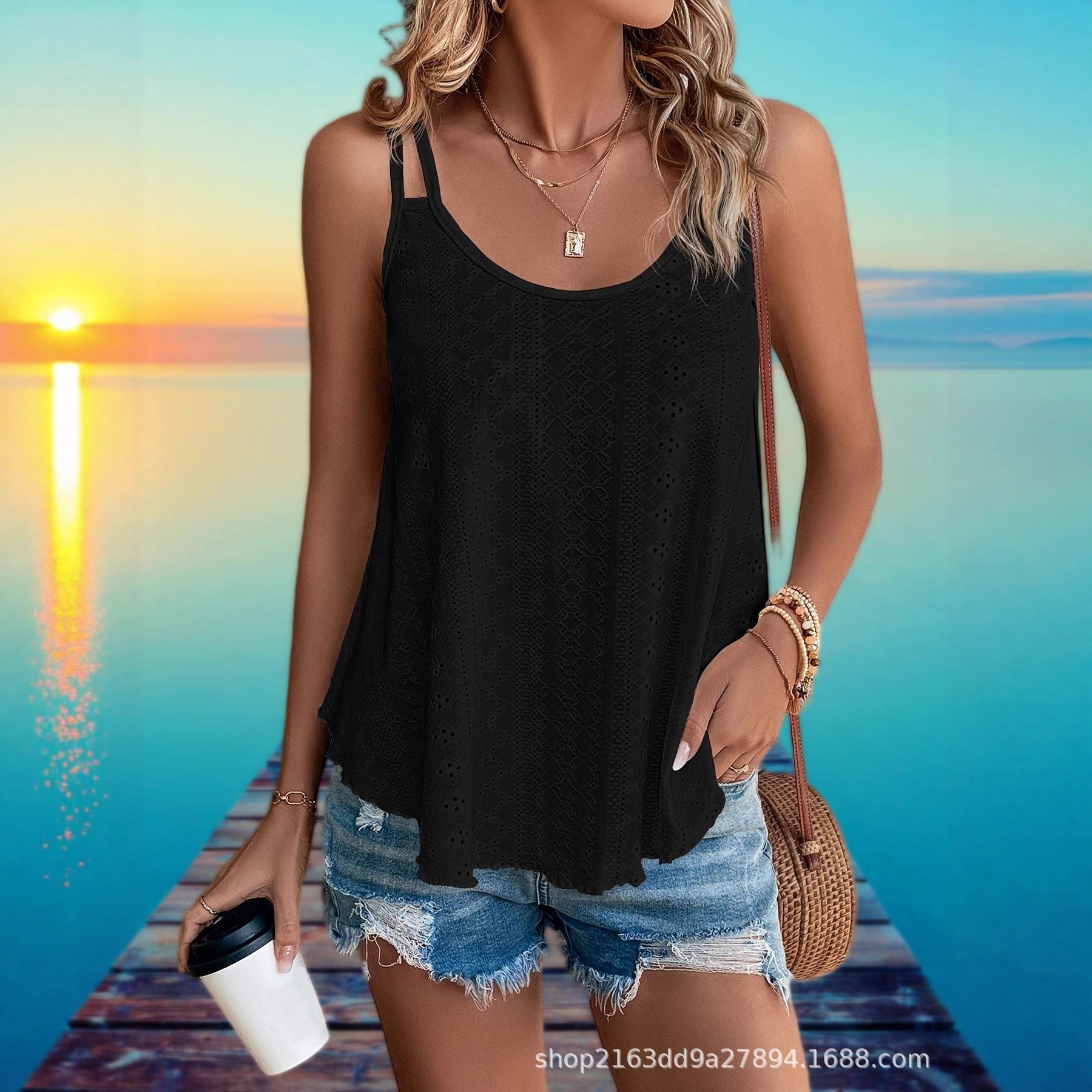 クロスボーダーヨーロッパとアメリカのアマゾン中空ソリッドカラーラウンドネックレディースボトムルーズキャミソールトップ