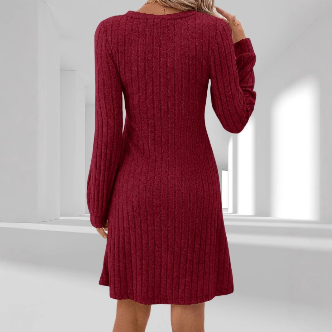 2025亚马逊独立站秋冬款波西米亚不规则磨毛坑条纯色连衣裙女装