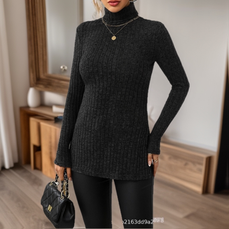 越境アマゾン婦人服ミドル丈既製品秋冬スリット入りリブ編みハイネックトップス欧米風エレガントな気質