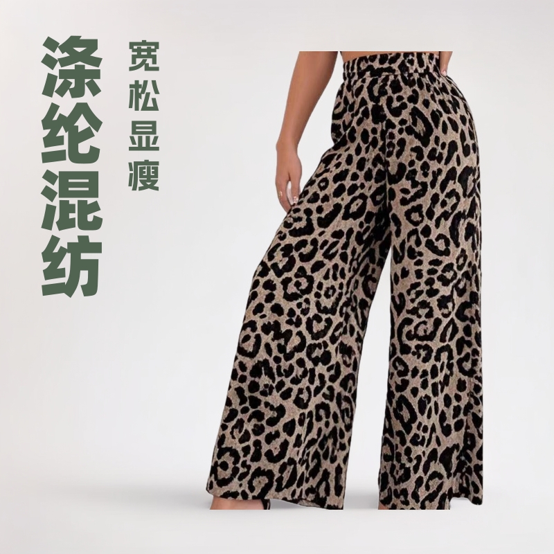 ヨーロッパとアメリカのアマゾンクロスボーダーレディース人気ストリートヒョウ柄カジュアルストレートパンツ女性の弾性ウエストルーズワイドレッグパンツ