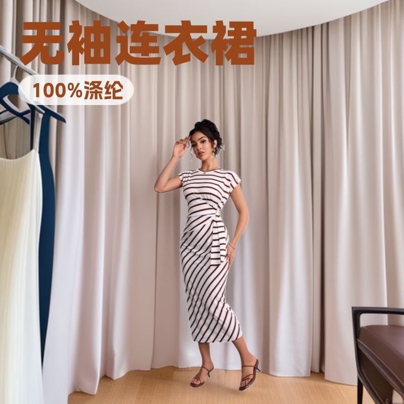 クロスボーダーヨーロッパとアメリカの服アマゾンラウンドネックストライプノースリーブドレスエレガントな夏の女性のハイエンドの女性のスカート