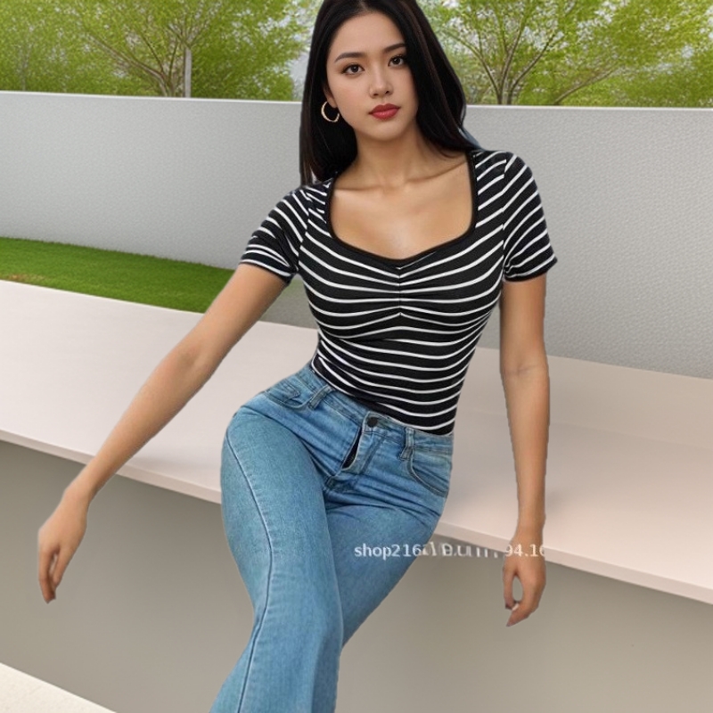 速卖通伸縮性のあるレディースサマーストライプ半袖トップス、着痩せ効果のあるインナーブラウス、スリムで上品なシャツ、新作エレガントな気質