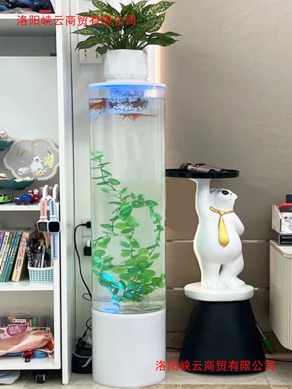 設置不要のチューブレスフィルター酸素化床置き水槽円筒形アクリル水槽テレビキャビネットリビングルーム魚