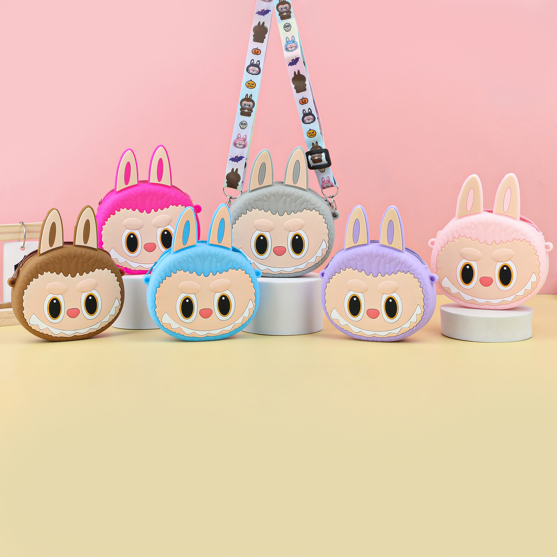 漫画風子供用財布、斜め掛けシリコンバッグ、ラブブ人形、小銭入れ、ショルダー防水携帯電話バッグ、女性用斜め掛けバッグ