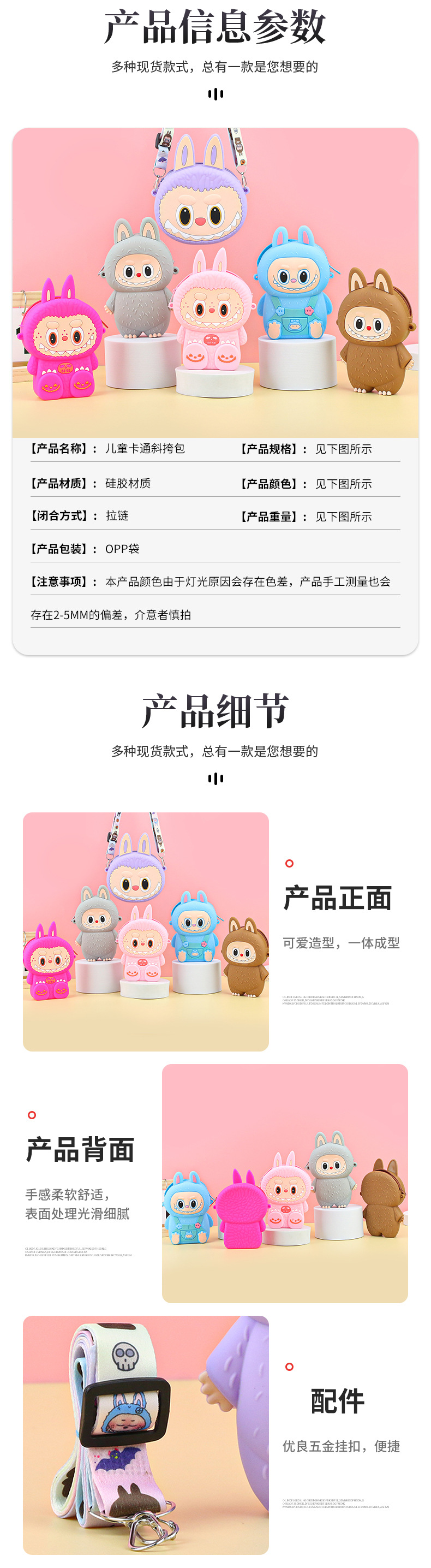 新款儿童可爱拉布布公主包包中号零钱包卡通便携零钱袋硅胶斜挎包