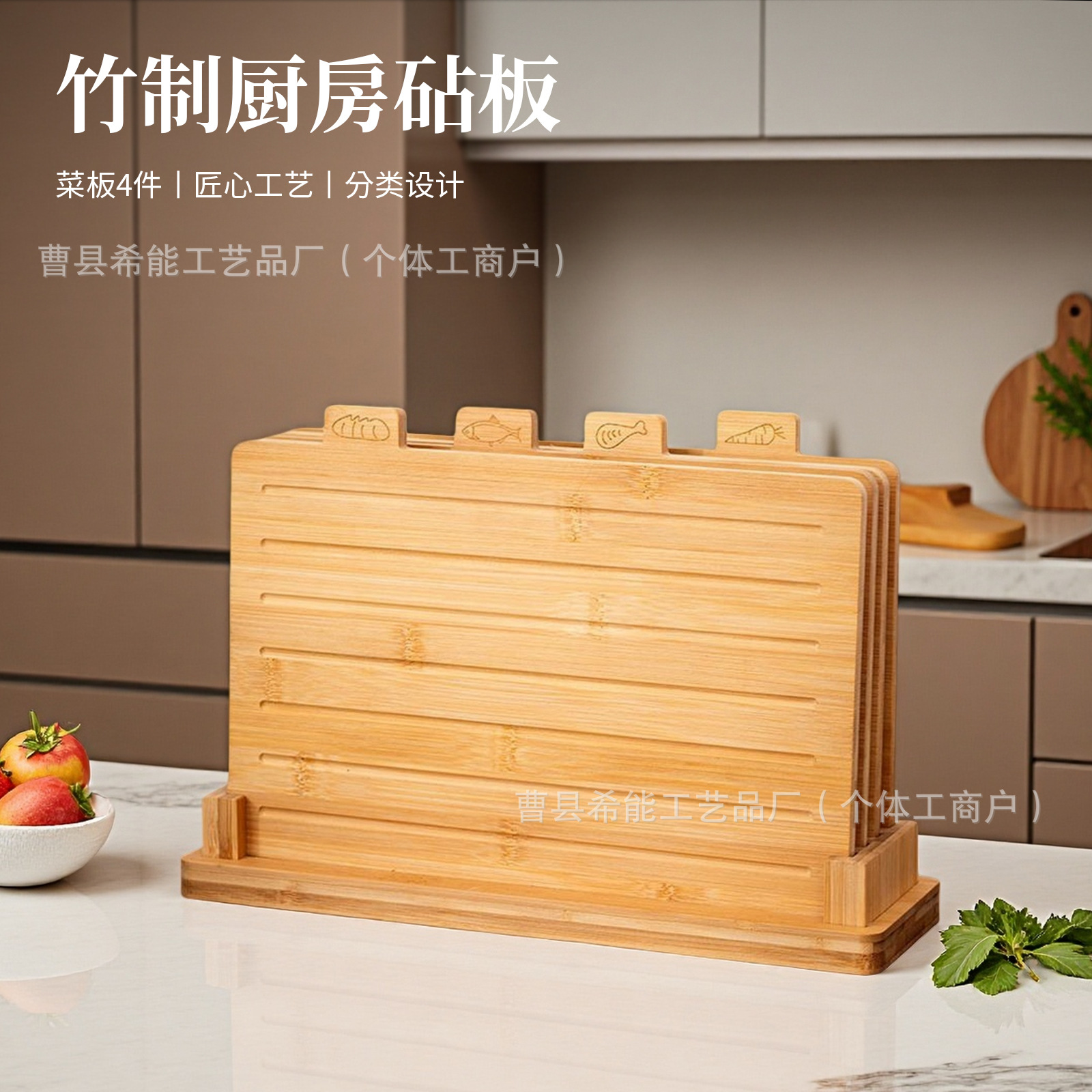 厂家直供竹质分类菜板四件套装砧板家用厨房多用分类切菜板