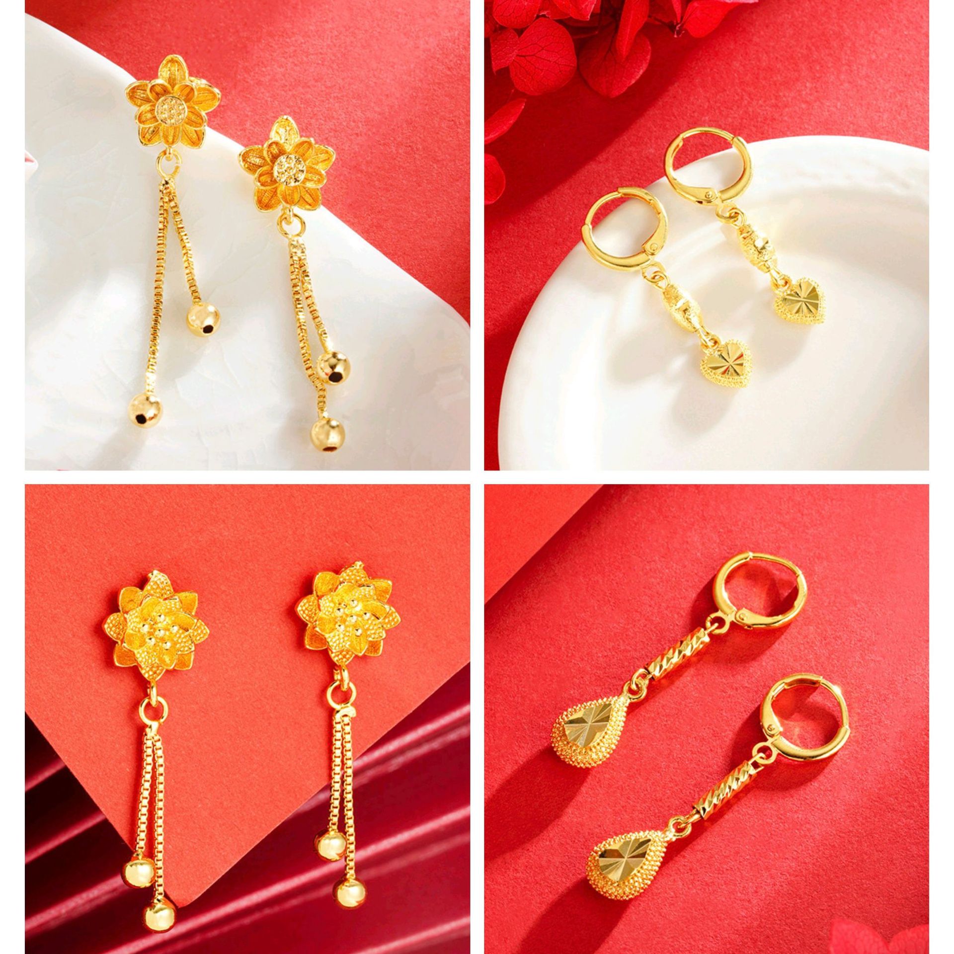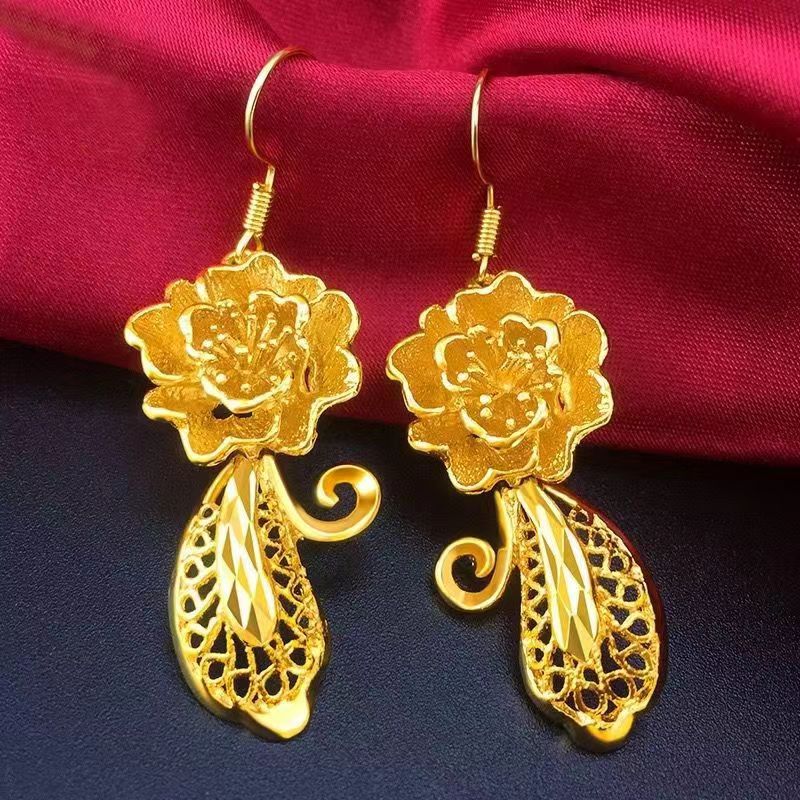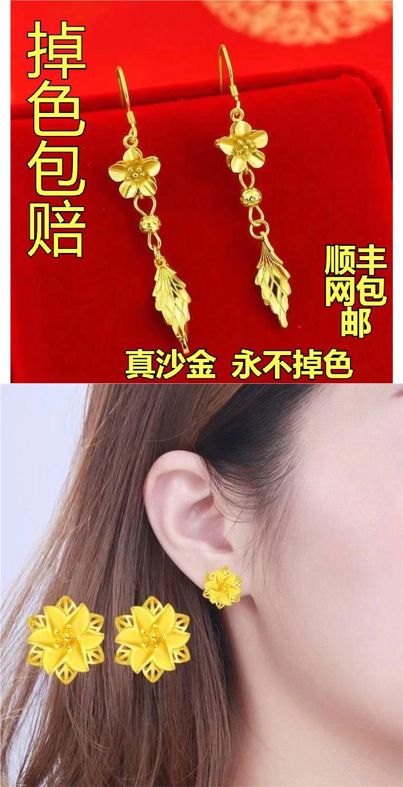 本物のベトナムサンドゴールドイヤリング 2024 新しいトレンディなイヤリングゴールドメッキジュエリーイヤリング女性のタッセルは結婚式のために色あせません