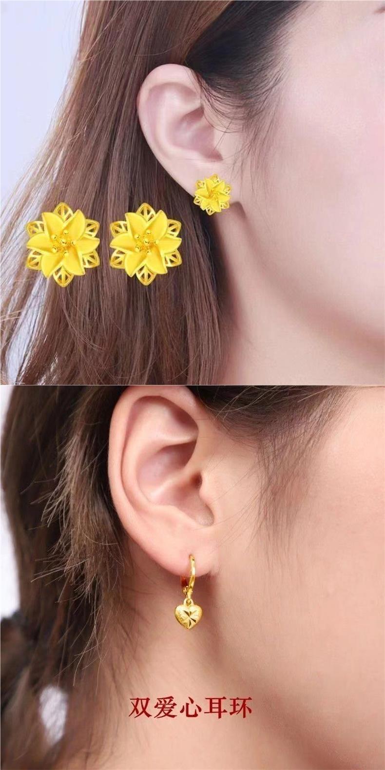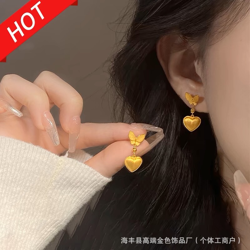 ベトナム沙金黄金色拉糸愛蝶ピアス女性シンプルファッション