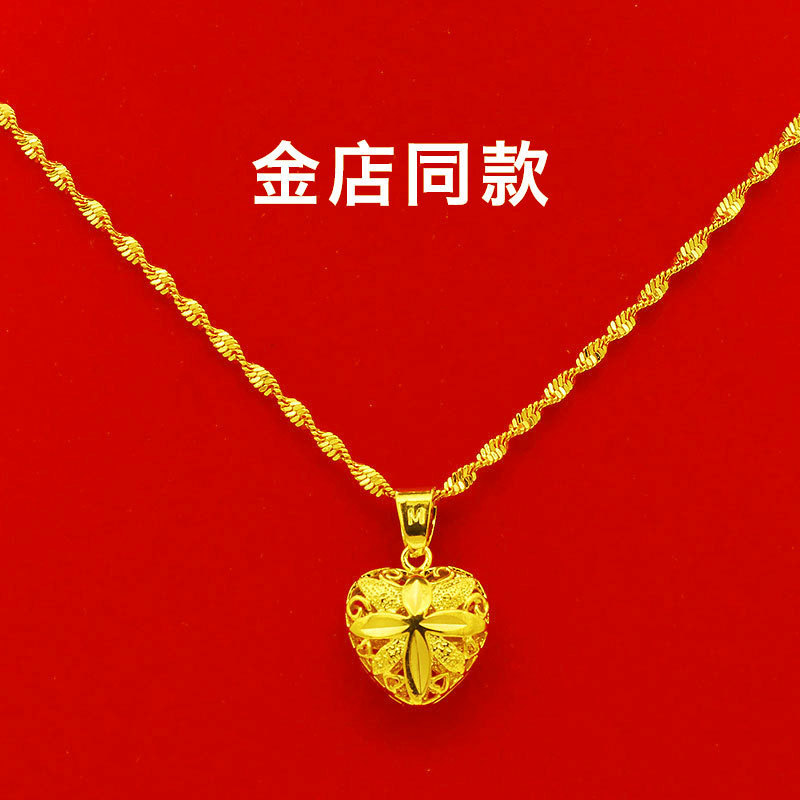 ベトナムサンドゴールドネックレスレディースゴールドネックレス鎖骨チェーン24Kゴールド非退色999本物の模擬純金ペンダント