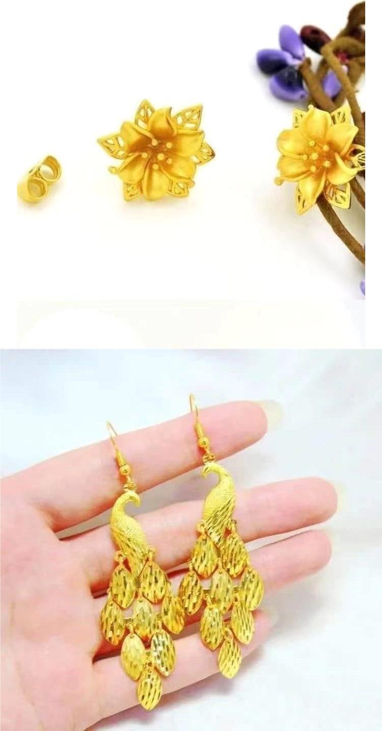 ゴールドストアと同じスタイルのサンドゴールドフェニックスウェディングロングイヤリングライトラグジュアリーファッションブライダルウェディングフェイクスリーゴールドライブソース
