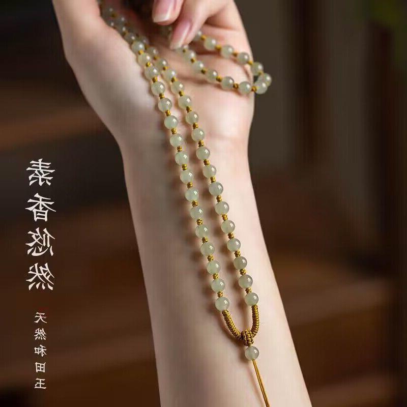 ホータン翡翠ネックレスストラップ翡翠ペンダントストラップペンダントストラップ男性と女性の翡翠ビーズチェーン手作りビーズチェーンロープ付き