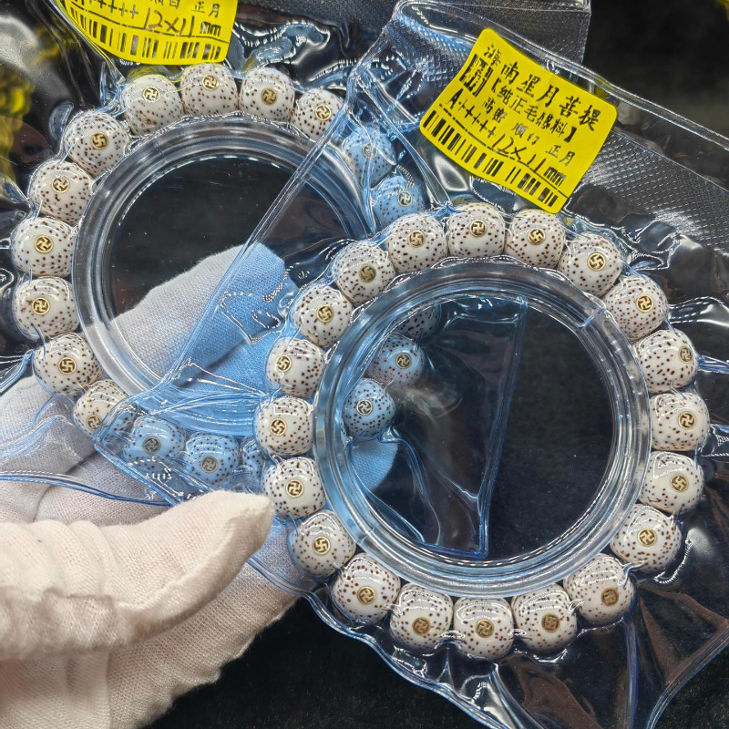 本物の海南星月菩提シングルサークルブレスレット、バケットビーズ象嵌万字11X10高密度ホワイトブレスレット、男性と女性用。