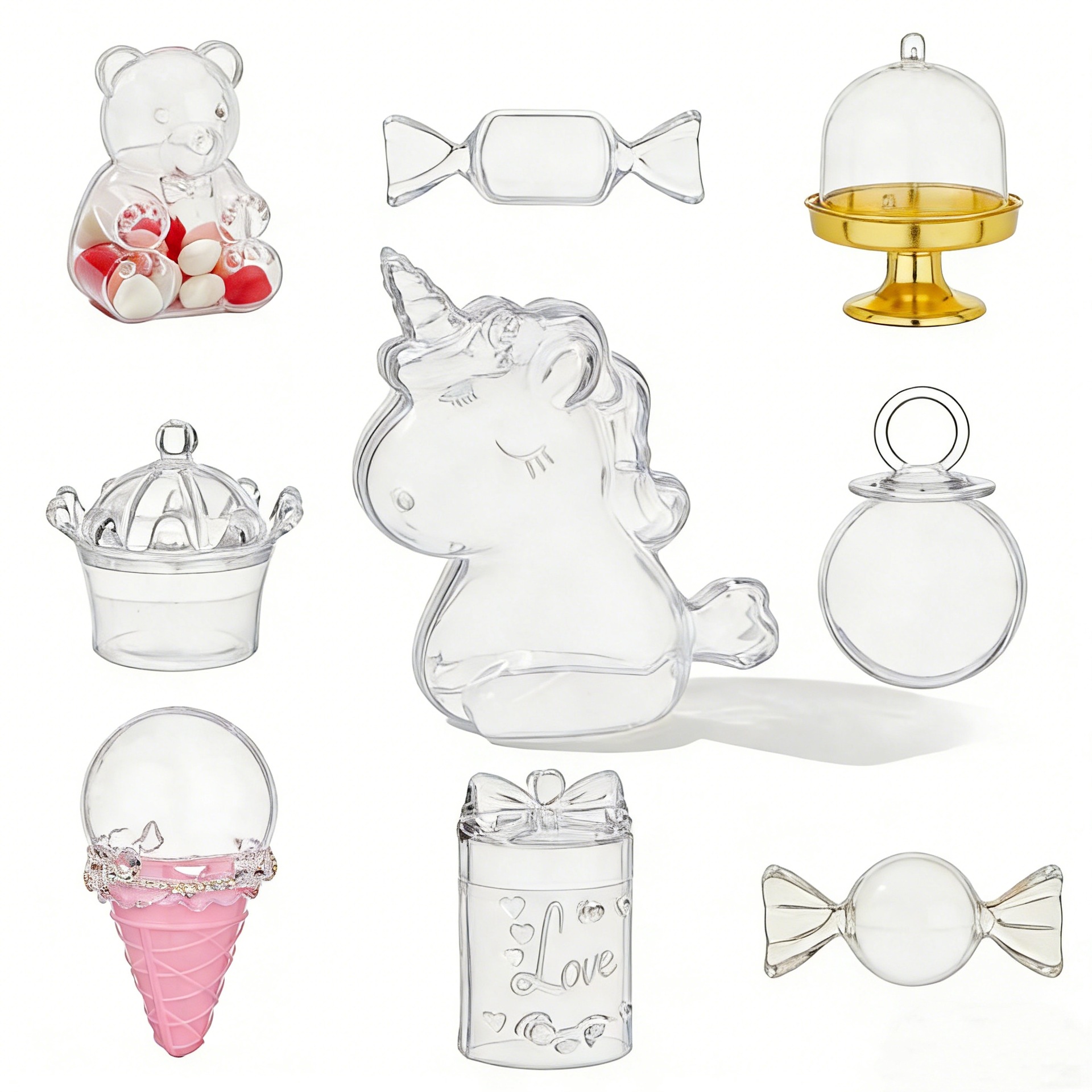 ヨーロッパのトレイ型デザートカップ、クリエイティブなケーキスタンド、透明なプラスチック製のキャンディボックス、結婚式や誕生日パーティー用のウェディングキャンディボックス