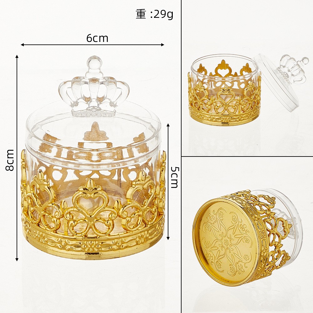 空の金メッキの王冠キャンディボックスウェディングキャンディボックスケーキプレート王冠デザートテーブルパーティーパーティー包装プラスチックボックス