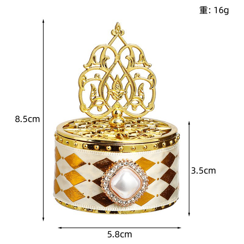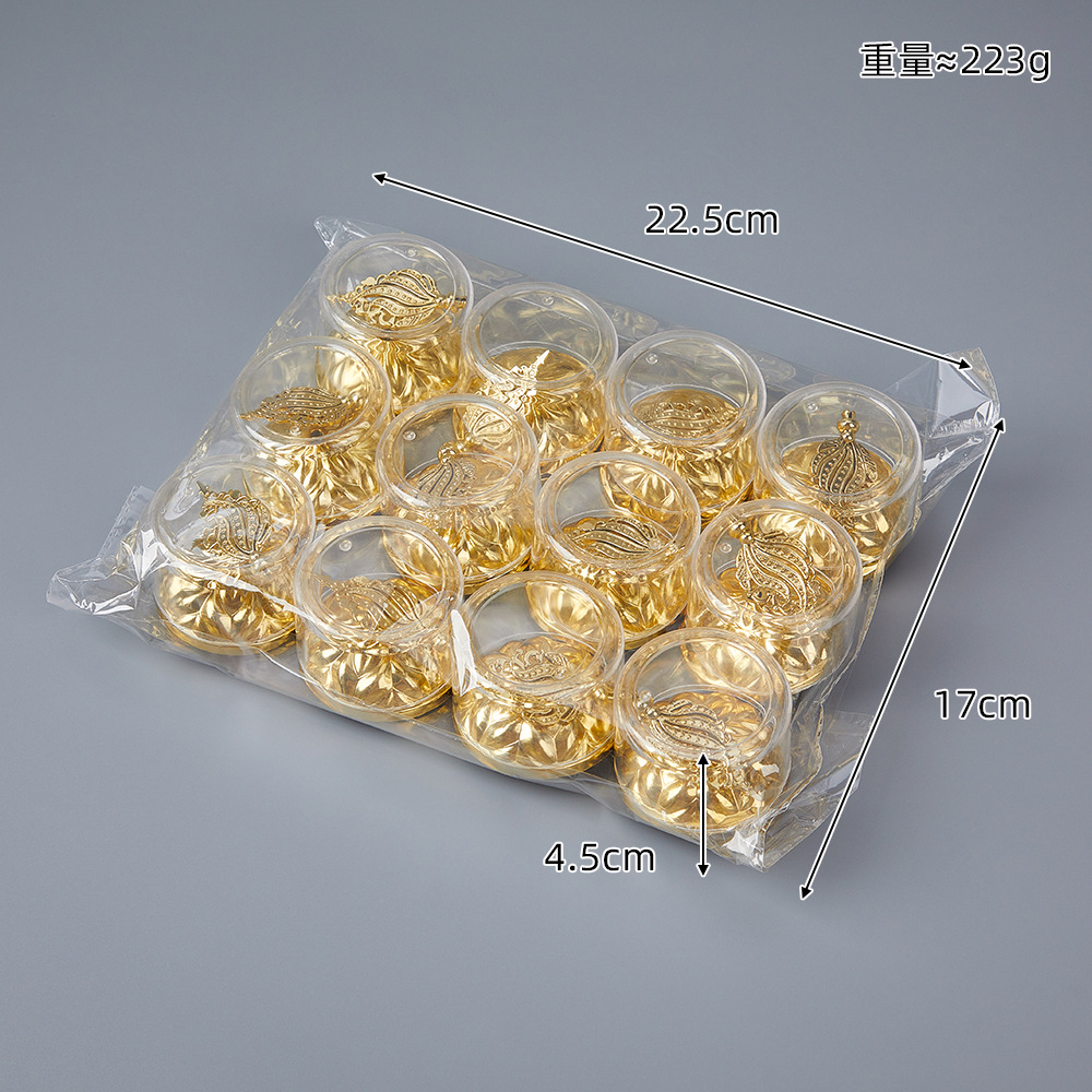 国境を越えた金色のキャンディボックス、中東アラブの結婚式パーティー用丸型ギフトボックス、ベビーシャワー用電気メッキボックス