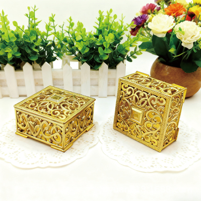 跨境镂空塑料盒子复古金色糖果盒包装结婚礼盒喜糖伴手礼收纳