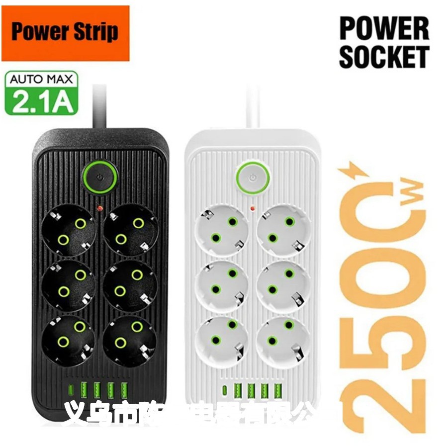 欧洲标准USB排插家用智能插座接线板多孔欧规插排带线插板外贸