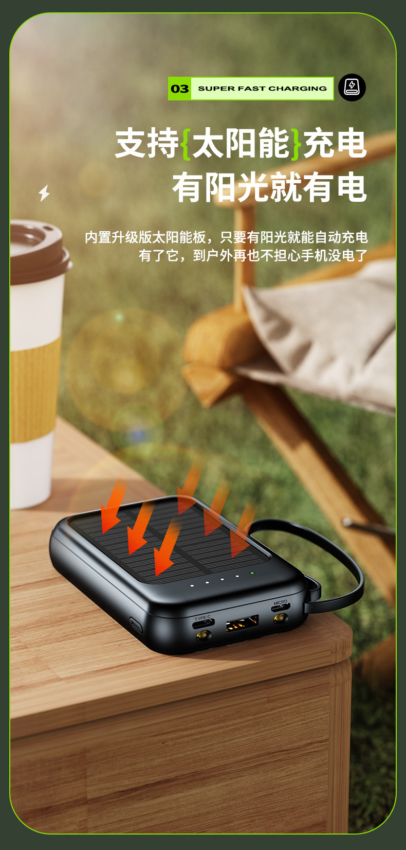 ギフトカスタマイズされたソーラーパワーバンクには、ロゴが印刷されたポータブル大容量20000mAhモバイル電源が付属しています