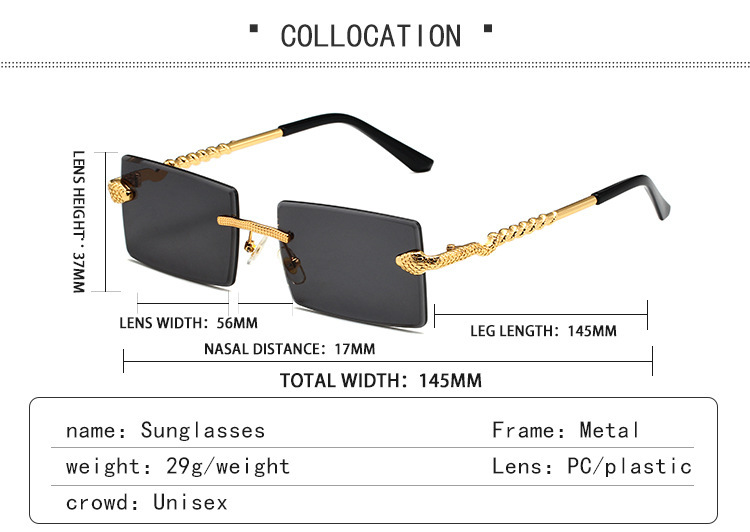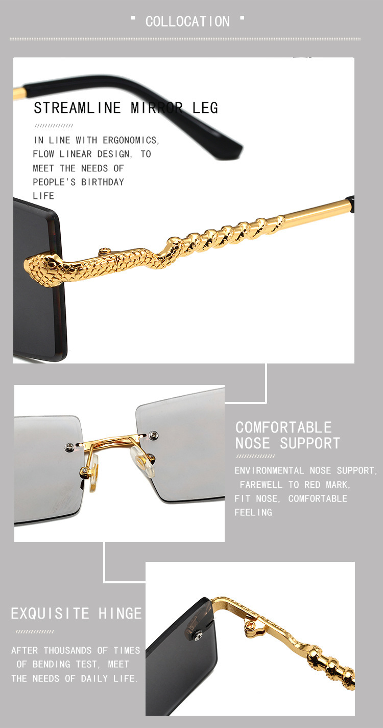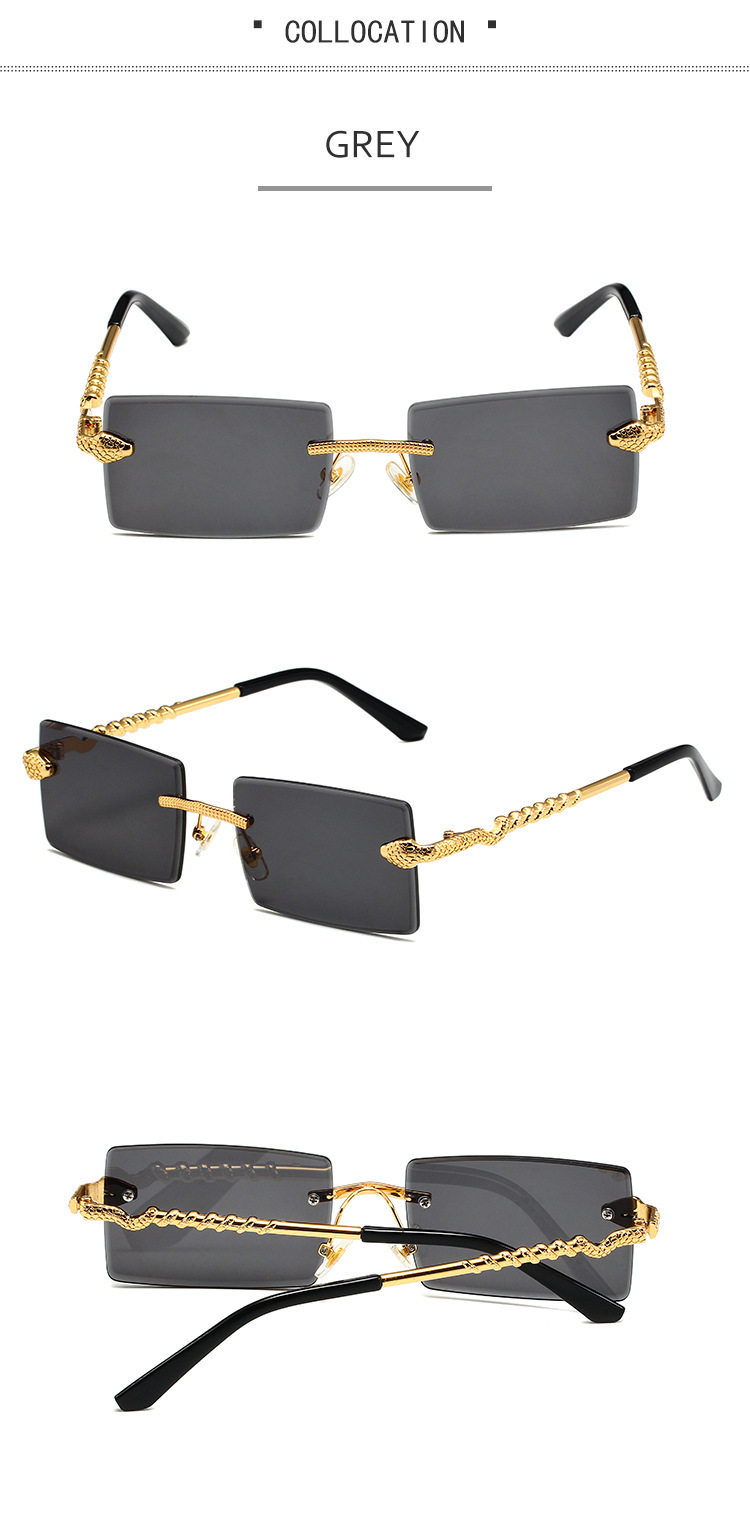 クロスボーダー新しいクラシックスクエアフレームレススネークヘッド装飾パーソナライズサングラスクロスボーダーヨーロッパとアメリカのレトロな男性と女性のサングラス