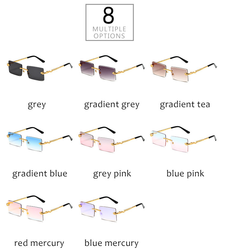 新款无框切边太阳镜 欧美时尚潮流木纹腿渐变色墨镜方形跨境眼镜