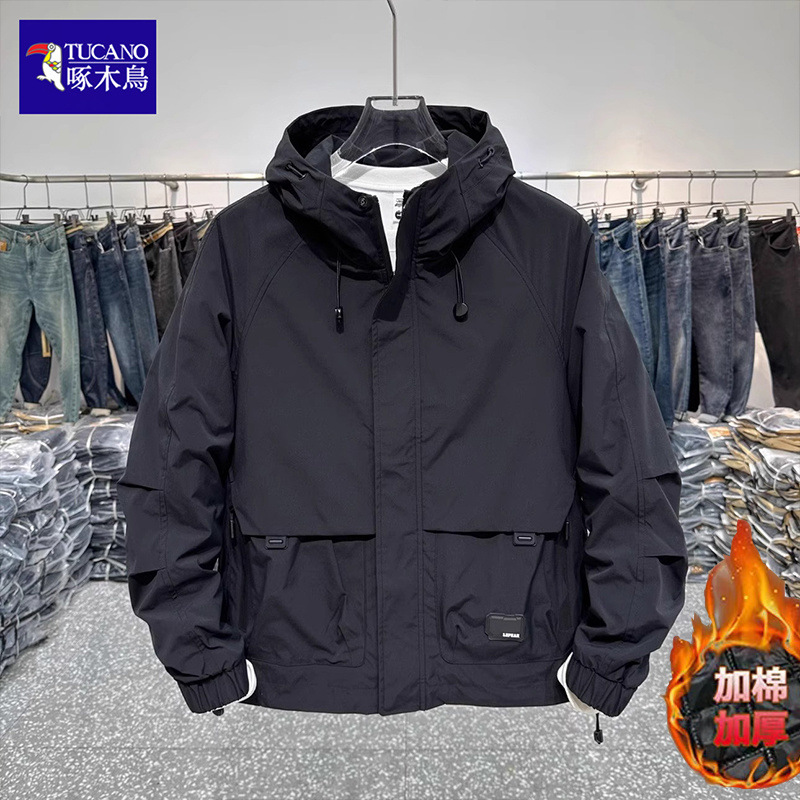 コートメンズ綿厚手ジャケット2025秋冬トレンド万能ワークウェアフード付き春秋ジャケット