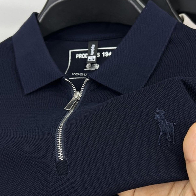メンズ半袖100シャツ、夏用ラペルジッパー刺繍半袖トップ、ハーフジッパー、プレミアム