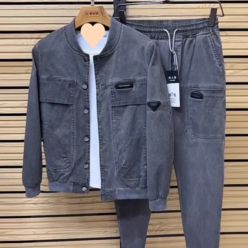 男士2025休闲套装春秋季时尚多口袋两件套简约百搭外套裤子一整套