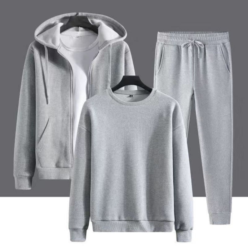 カジュアルスーツ秋と冬のスリーピーススポーツフード付きジャケット暖かいルーズベルベットスウェットシャツメンズスポーツウェア