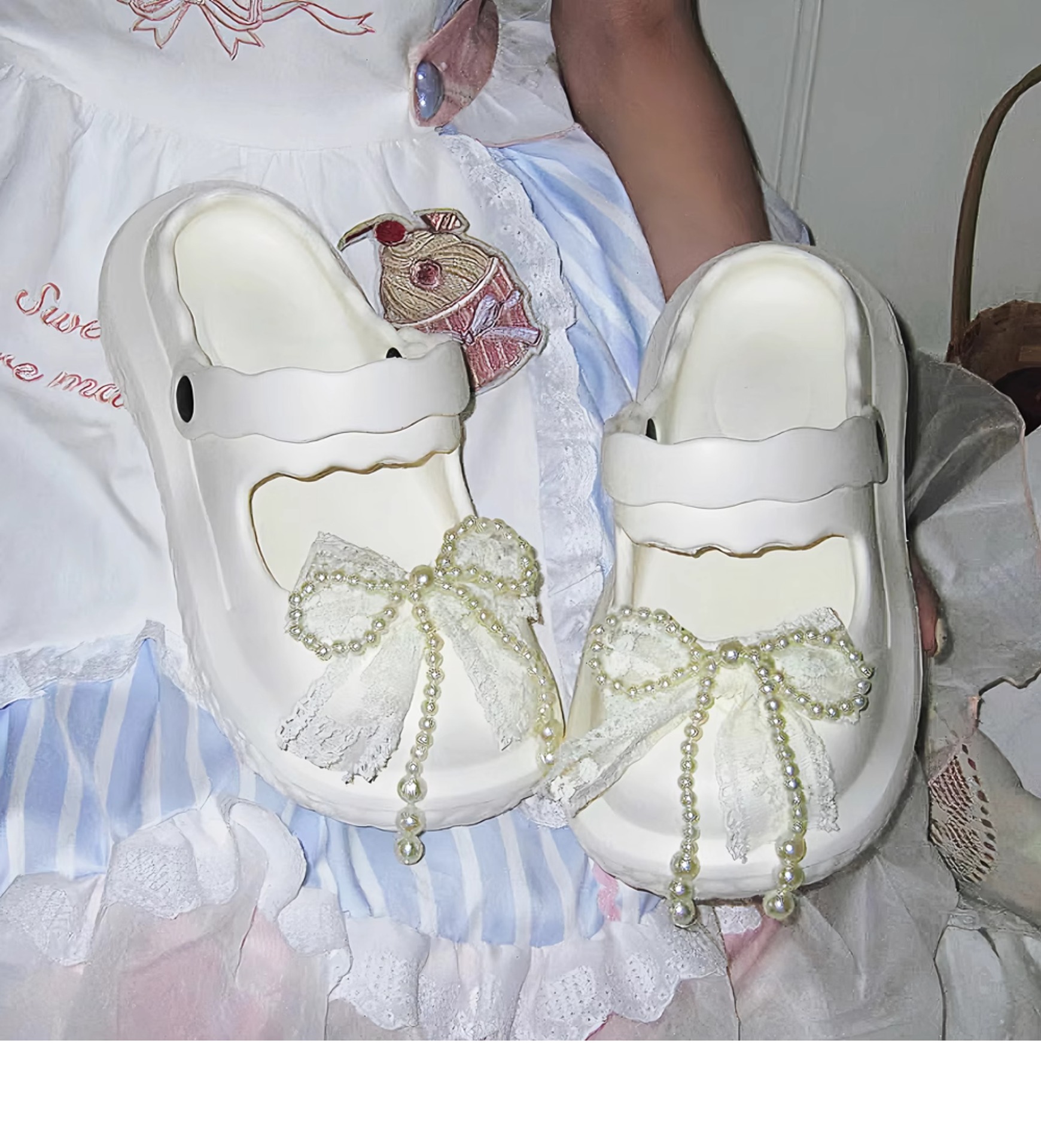 パールリボンホリデー 2025 新しいサンダルインターネット有名人ソフトかわいい女性イン包頭スリッパロリータ靴夏
