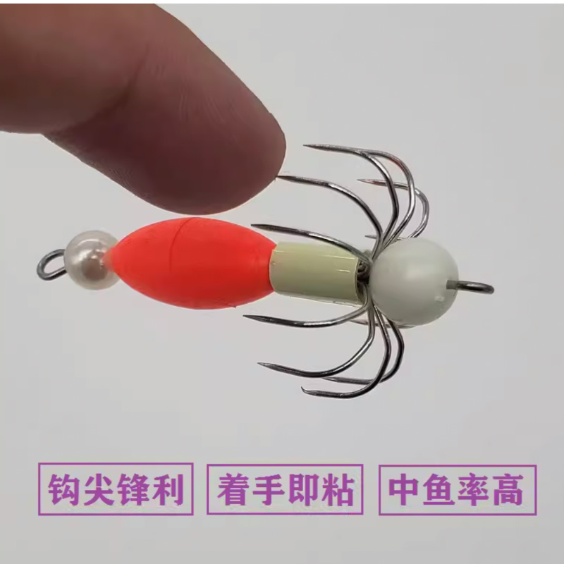 八帯魚副フック八爪イカフック夜光蛍光ビーズタコフック