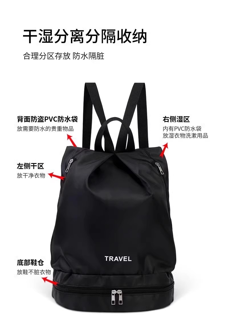 水泳バッグ干湿分离レディーススポーツジムバッグ防水旅行収纳袋ヨガバッグ旅行リュックリュックサック