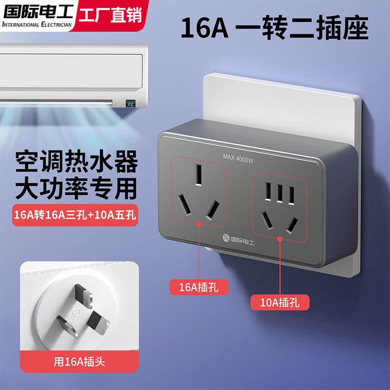 16A转10A插座转换器插头一转二空调专用大三孔扩展插板插排转换头