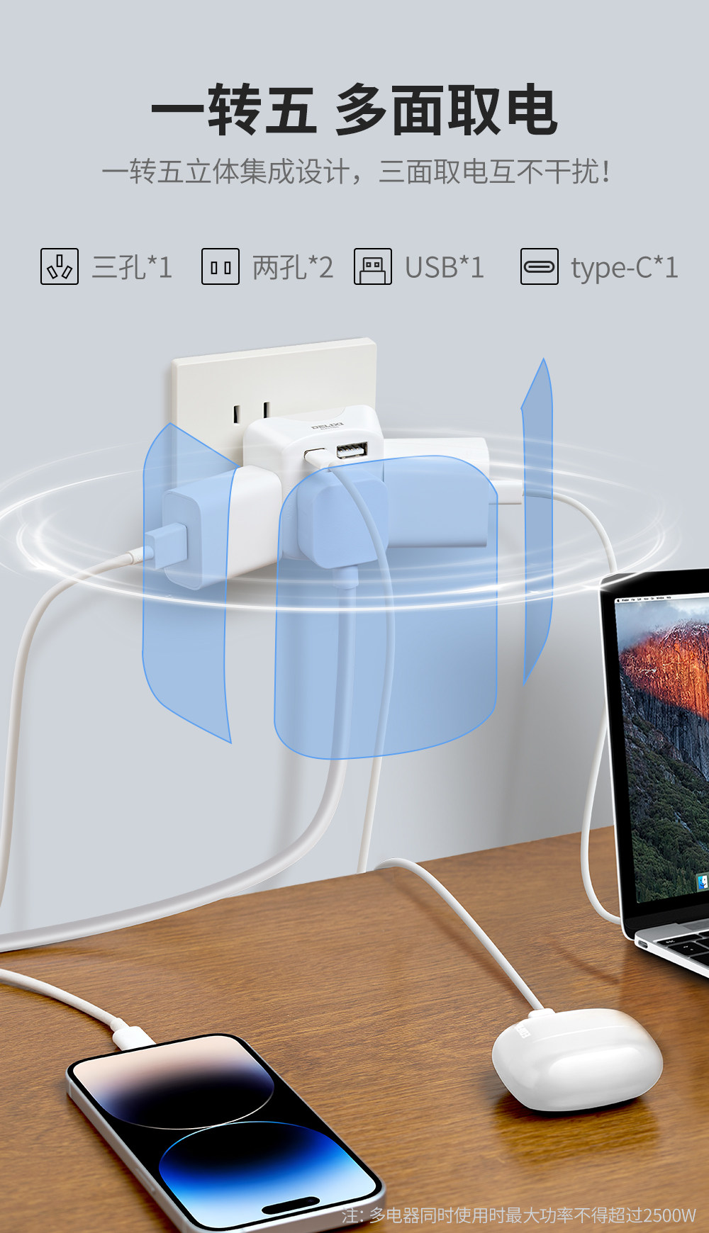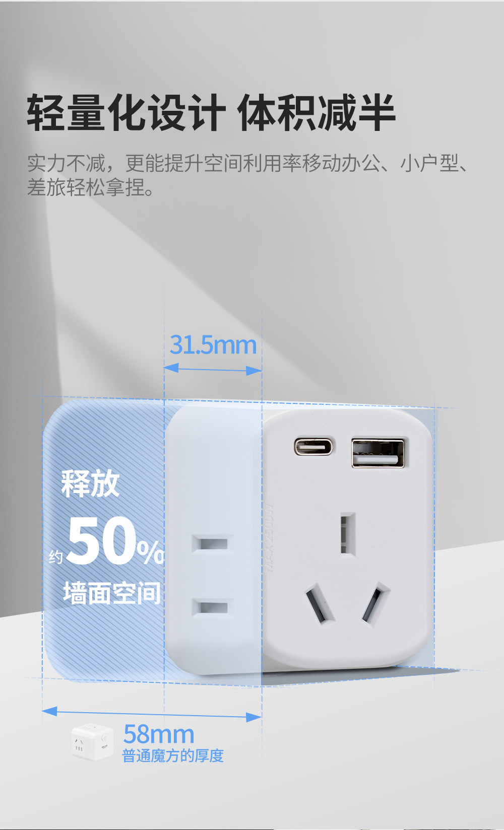 迷你插座转换器无线一转三多用转换插头超薄铜二插10A手机充电